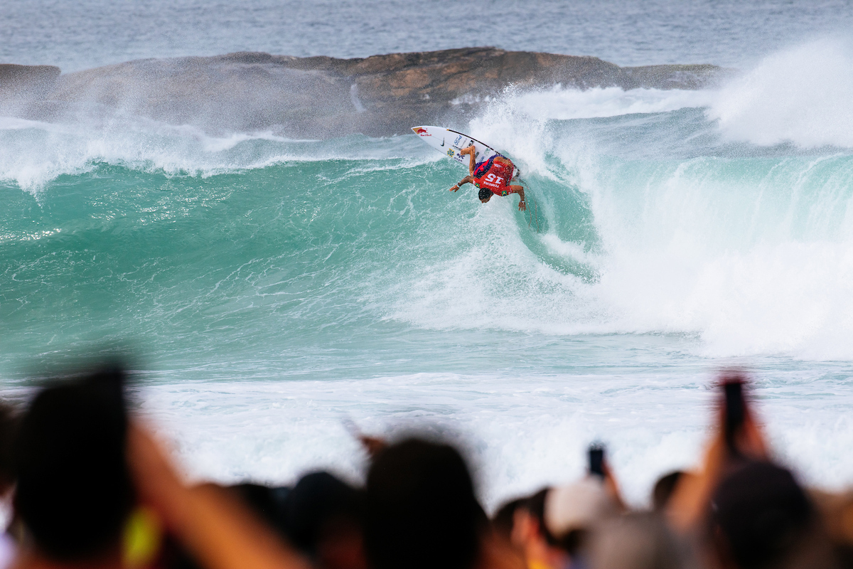ウェイティング期間の初日はフラットなコンディションだったが、3~4フィートのスウェルが入り、世界トップクラスのサーファーたちが、ビーチに詰めかけた何千人ものファンから大歓声を浴びながら、ハイパフォーマンスを披露した。