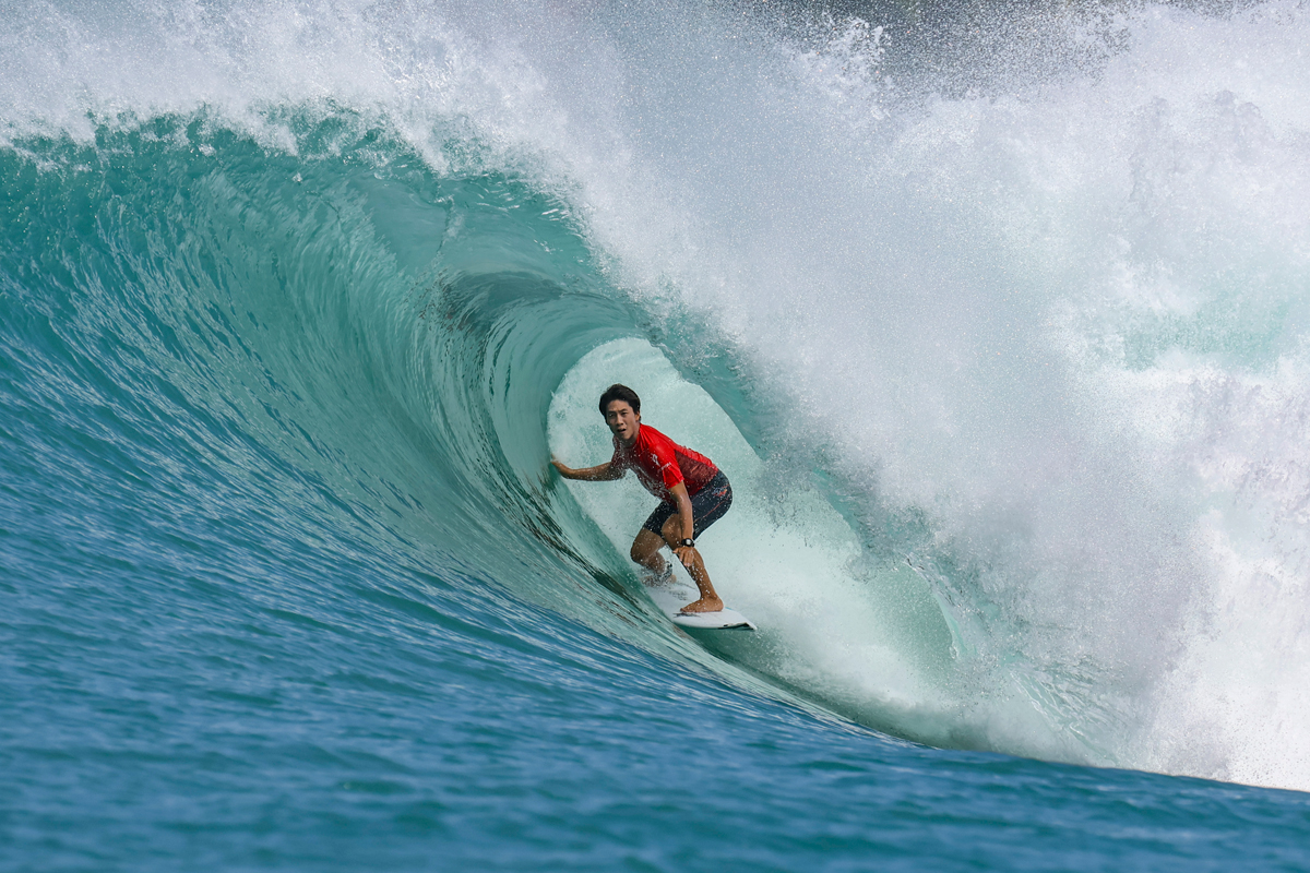 メンタワイのローカル、キア・ホイヤー(INA)は、ラウンドオブ16でもその素晴らしいパフォーマンスを継続し、ディープでテクニカルなバレルで8.67をスコアして、パワーの源へと飛び込むようなラップバックで決定的なリードを奪った。