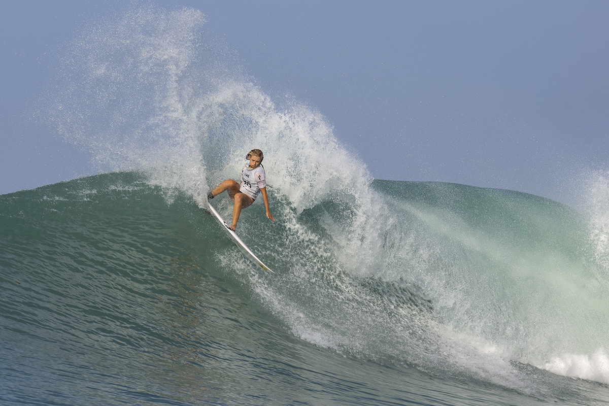 ニアス・プロのディフェンディング・チャンピオン、エラ・マカフレイ(USA)は、8.17(10点満点)というエクセレントなスコアでスタート。素早くバレルをキャッチしたマカフレイのリズムとラグンドリ・ベイとの相性は抜群だ。彼女はその後、クオーターファイナルに進出し、アメリー・バーク(AUS)と対戦することになった。