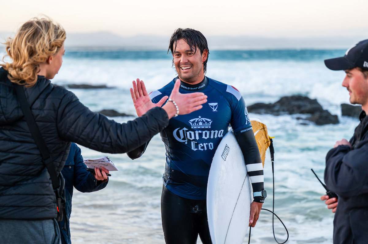 「二人ともかなり良いスタートを切った」とスミスは語った。「僕はただ、素晴らしい波を見つけてヒートを制したいだけだった。案の定、その波が来て、まるで自分のリビングルームのように乗りこなしたよ!ここの応援は本当にすごい。南アフリカと次世代の選手たちに刺激を与えること、それがこのスポーツのすべてですね。12 ヶ月後にまたここで会おうとルークに言った。彼の夢が叶うことを心から願っているよ。」と語り、地元の期待に見事応えた。