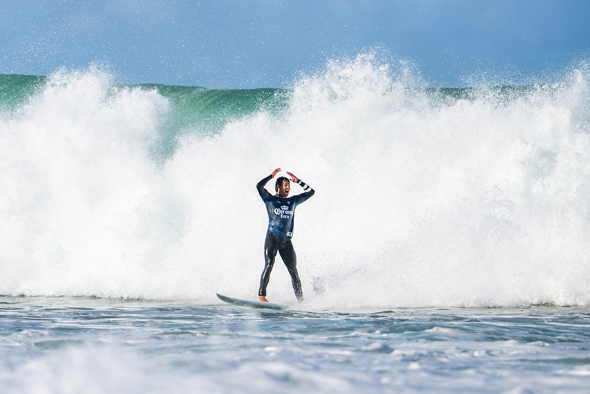 今回は、すべての星が揃いました。たくさんの人たちに応援してもらい、その前でパフォーマンスできたことは、とても嬉しいことです。今まで見た中で最高のバックハンドサーフィンを披露し、ファイナルで同じグーフィーフットの選手と対戦して、他のグーフィーフットのサーファーたちに、パーフェクトなライトハンドのポイントブレイクで最高の選手たちと対戦できることを知ってもらいたいと思っていました。」