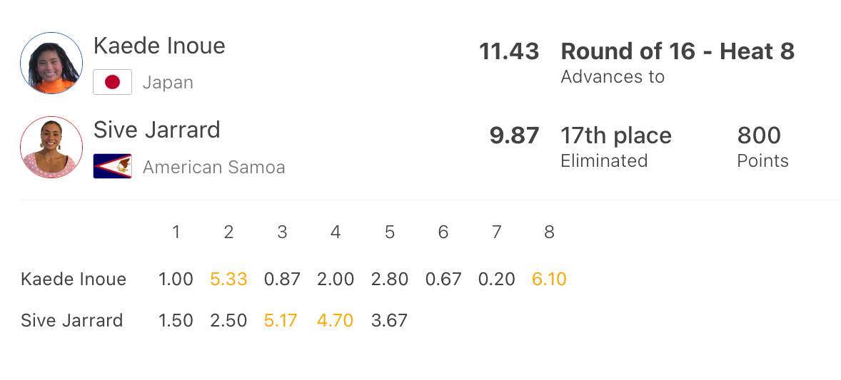 ワイキキ出身の 2023 年世界ロングボードチャンピオン、カイ・サラスと、世界タイトルを常に狙うソフィア・カルヘインが、ハワイの選手としてラウンドオブ16 への道を開いた。さらに、カイ・エリス・フリントも敗退の危機を乗り越えた。