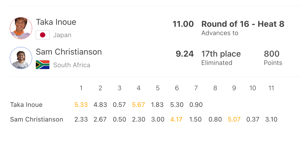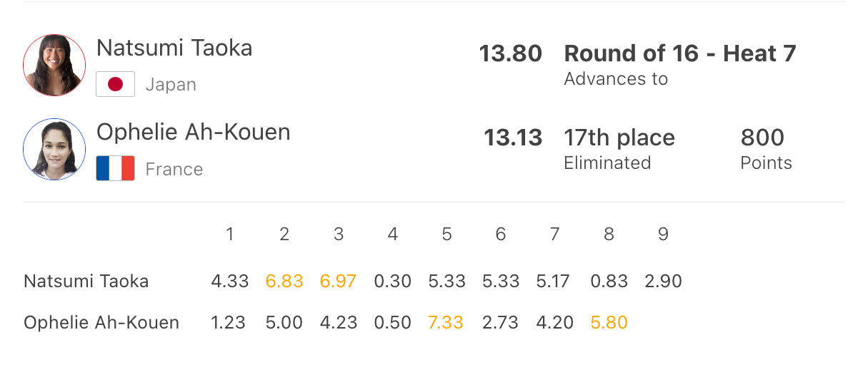 はい、ええと、昨日は少しミスをしてしまって負けてしまい、エリミネーションラウンドに進むことになりました。なのでヒートの前はすごく緊張していましたが、コンディションは昨日よりずっと良かったです。それで、最初の5分で6点台を出すことができて、とてもリラックスして競技を続けることができました。