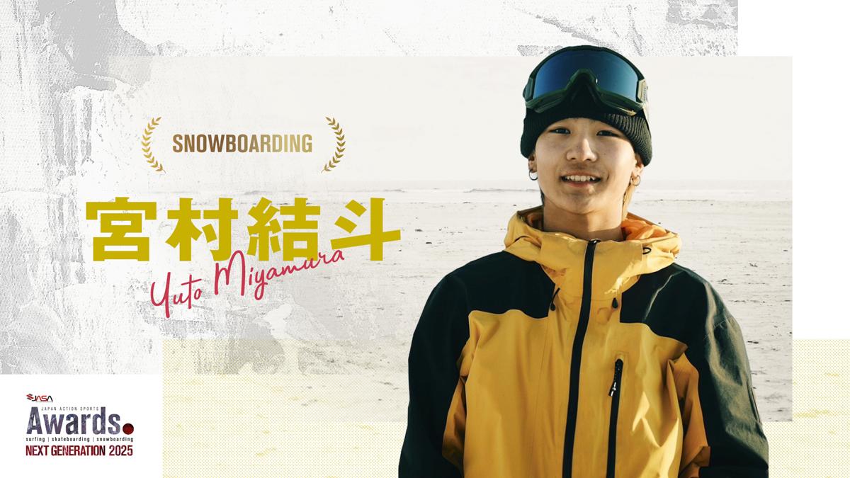スノーボード男子は、世界の強豪を相手に2023年エドモントン4位、2024年アスペン3位、2025年世界選手権5位と着実に実力をつけ、国内でも全日本スキー選手権大会スノーボード・スロープスタイル部門で準優勝を果たすなど、その実力と表現力は国際舞台でも一目置かれる存在となっている、宮村結斗(みやむら・ゆうと)が受賞。