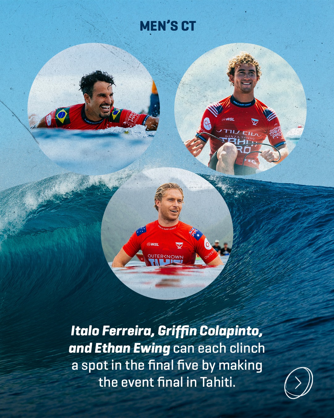 イタロ・フェレイラ、グリフィン・コラピント、イーサン・ユーイングは、タヒチでのイベントでファイナルに進出すれば、ファイナルファイブのスポットを獲得できる。