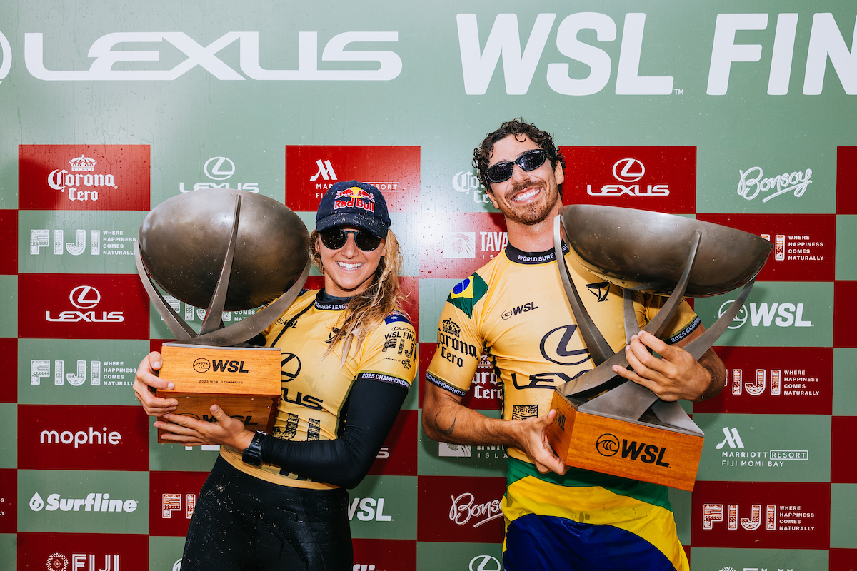 フィジー・クラウドブレイク(2025年9月2日火曜日)– 本日、モリー・ピックラム(AUS)とヤゴ・ドラ(BRA)が、ワールド・サーフ・リーグ(WSL)2025ワールド・チャンピオンシップ・ツアー(CT)最終戦となるレクサス WSLファイナルズ フィジー プレゼンテッド・バイ・コロナ セロで優勝を勝ち取り、2025年ワールドチャンピオンに輝いた。
