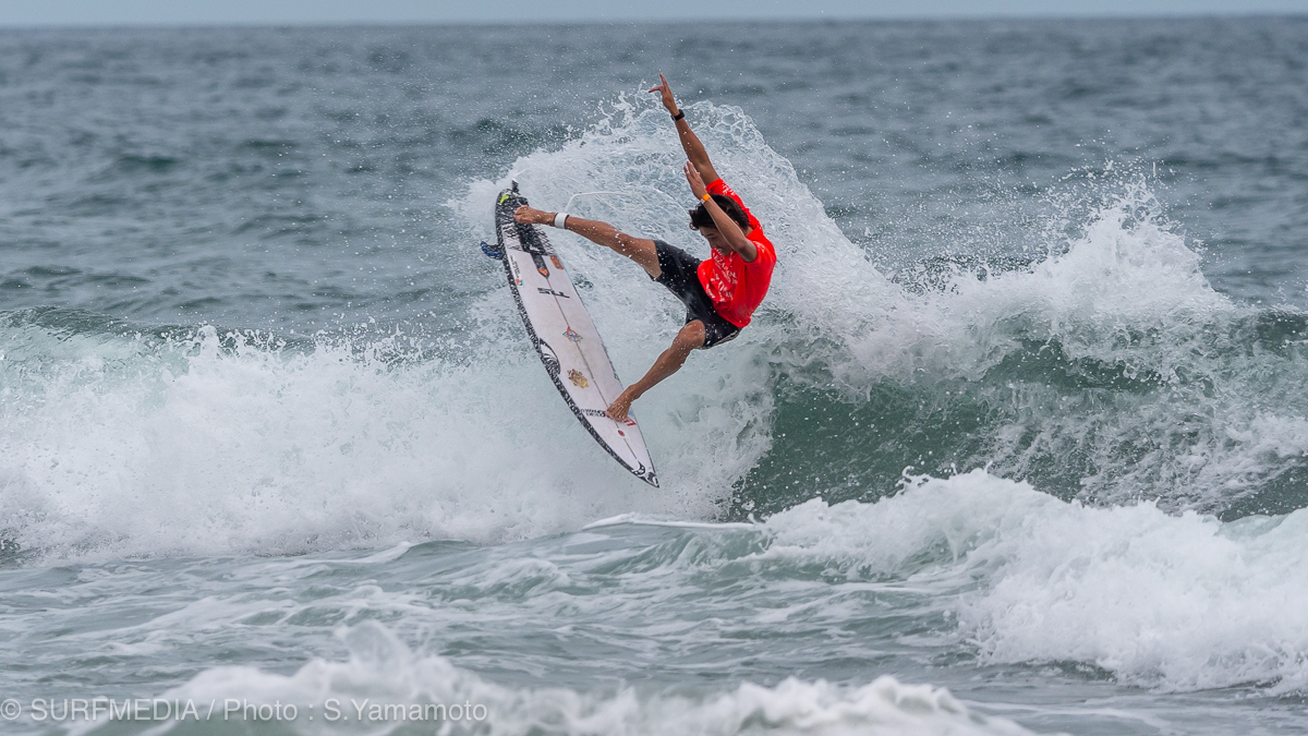 大会初日の天候は晴れのち曇り。風はサイドオンからオンへと変わり、波は朝のコシ〜ハラから午後にはモモ〜コシへサイズダウンした。全体的にブレイクはばらつきがあり、まとまりのないコンディションで、選手たちは乗りながら対応する展開となった。