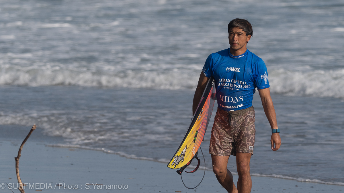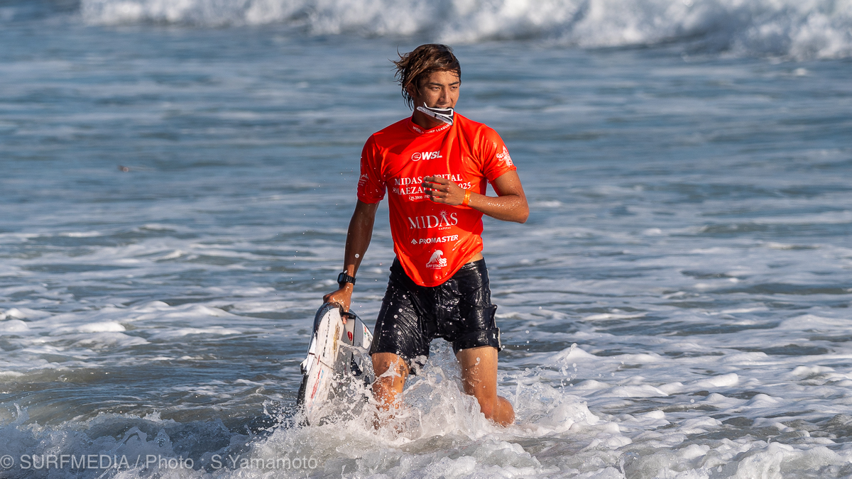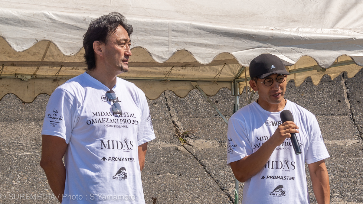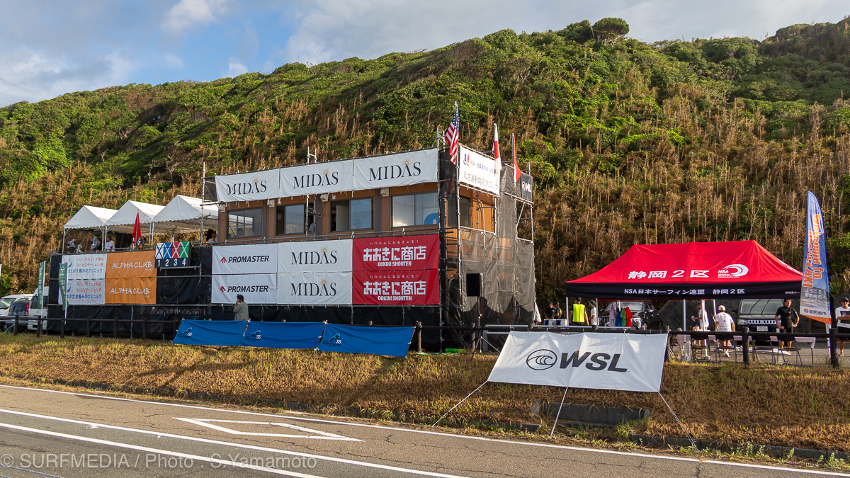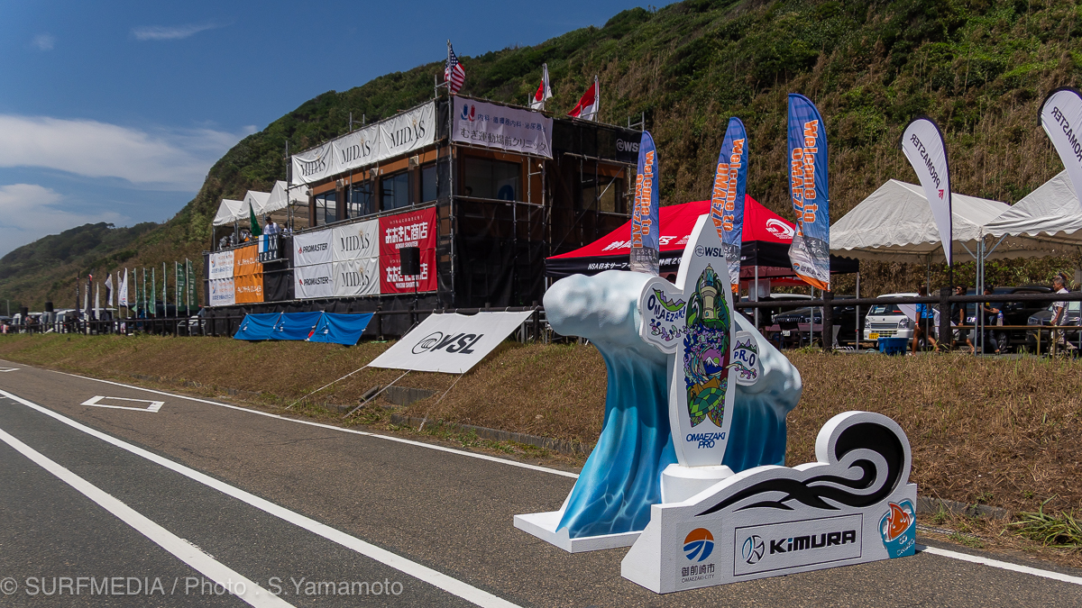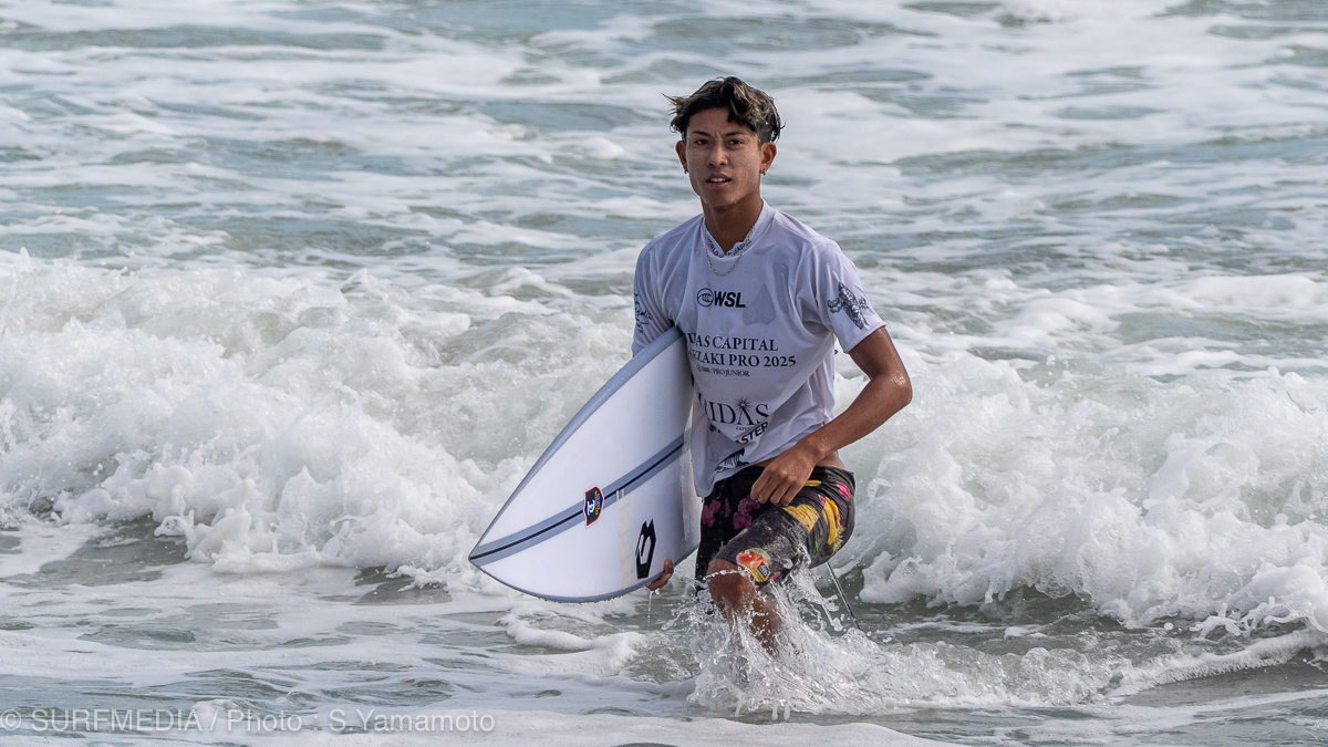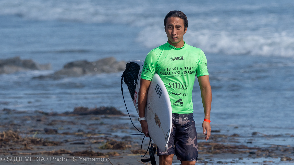 WSL Asia / Men’s & Women’s QS2000 & Pro Jr「MIDAS CAPITAL OMAEZAKI PRO 2025」は9/6 のDAY-4。昨日のDAY-3は台風通過の影響でノーコンテスト。本日は朝から雲が残るものの概ね晴れ。風はオフショア、波は頭オーバーでブレイクは不規則。潮回りは引きが午前10時30分、満潮は17時15分という潮回り。