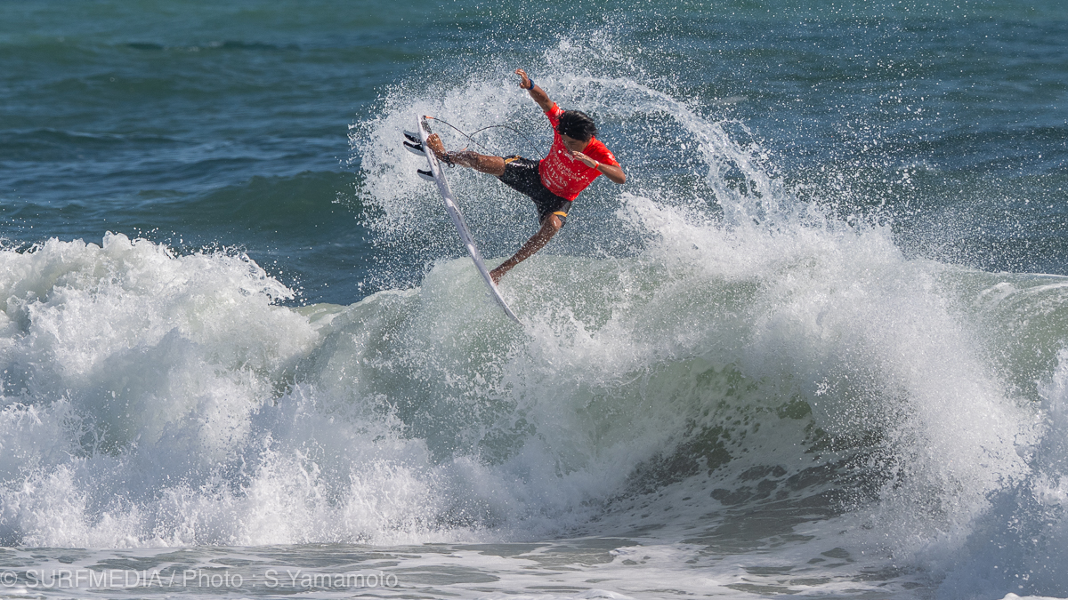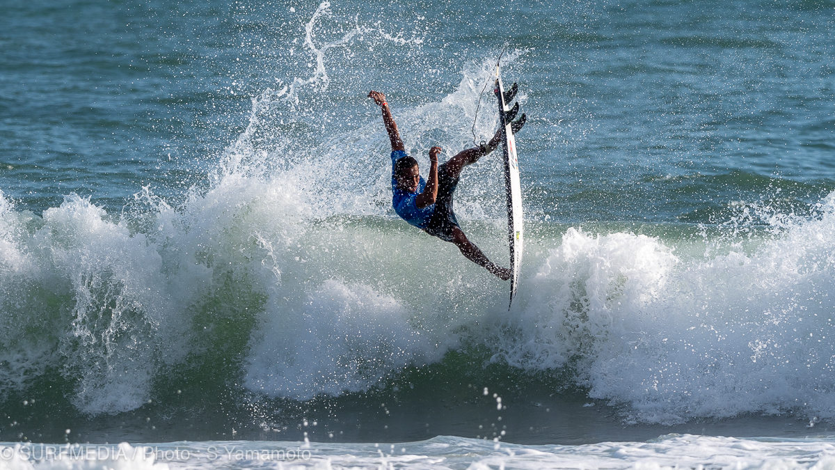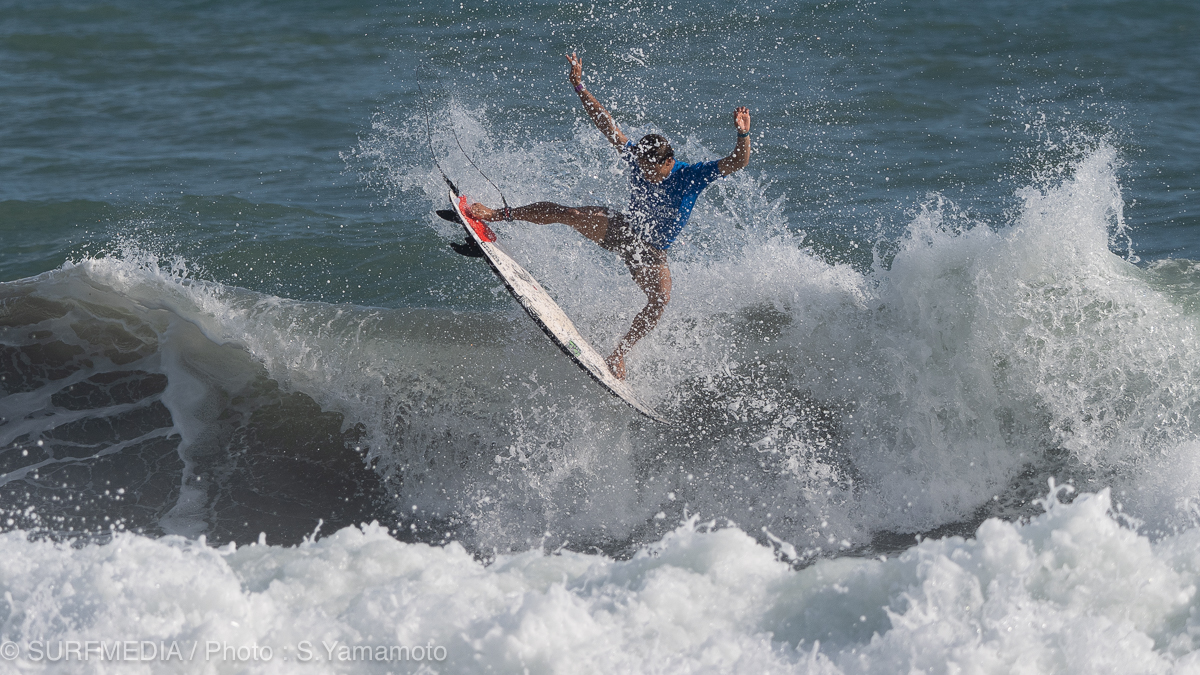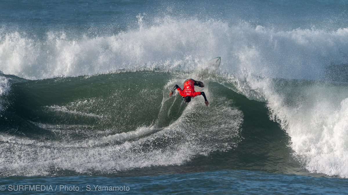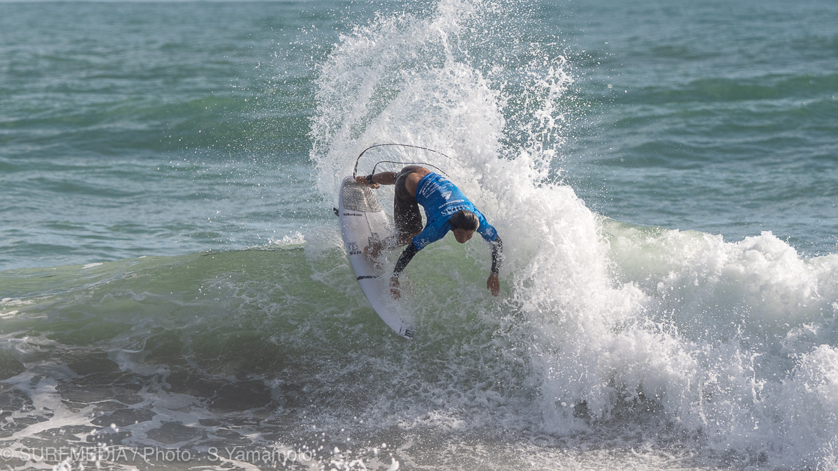ただしインサイドまで乗り切ればパドルバックに時間を取られるため、波の選択が勝敗を大きく左右した。午後は風がサイドオンに回り、サイズもムネ〜カタにダウン。ミドルへポジショニング移動と、速いワイドブレイクの攻略が勝ち上がりの鍵となった。