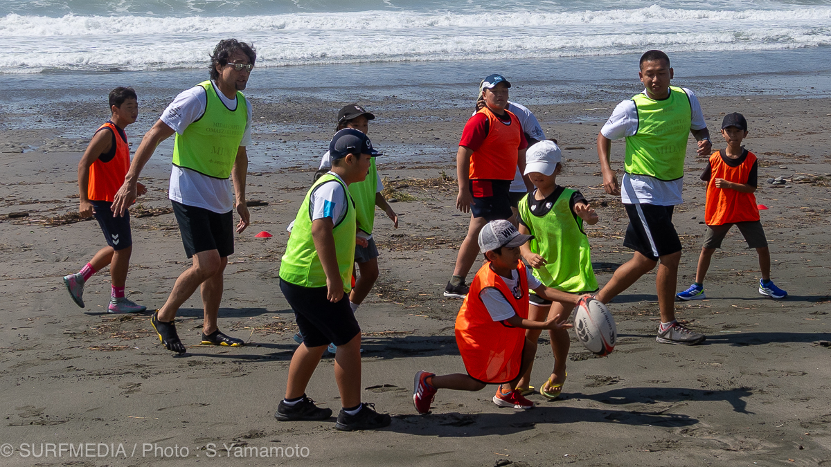 元日本代表の大野均氏と小野澤宏時氏を講師に迎えたラグビー教室も行われた。