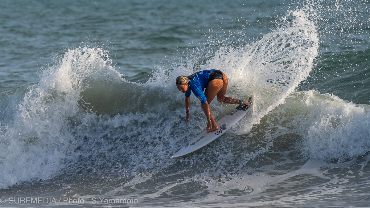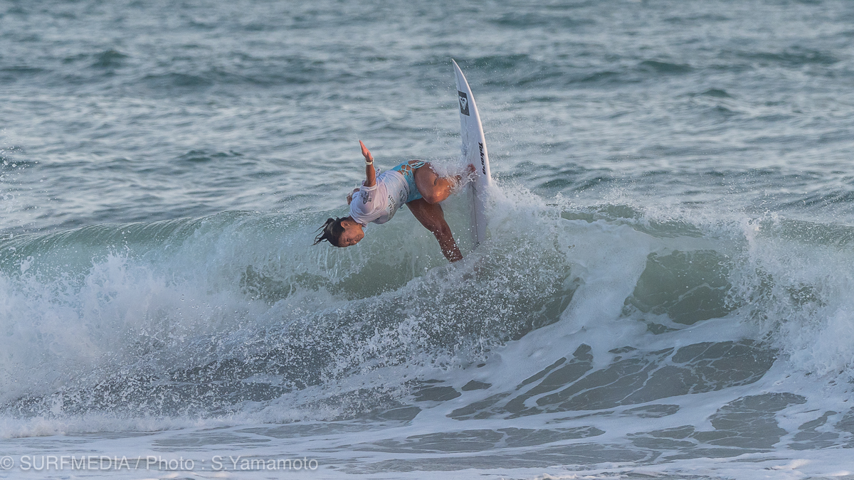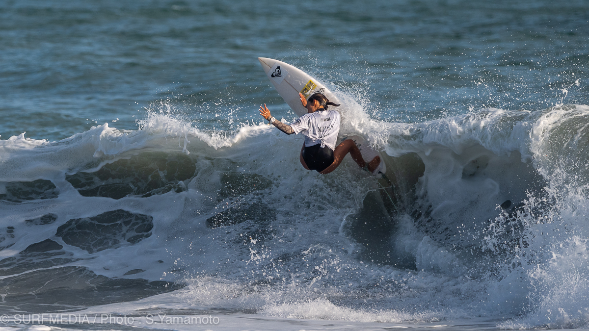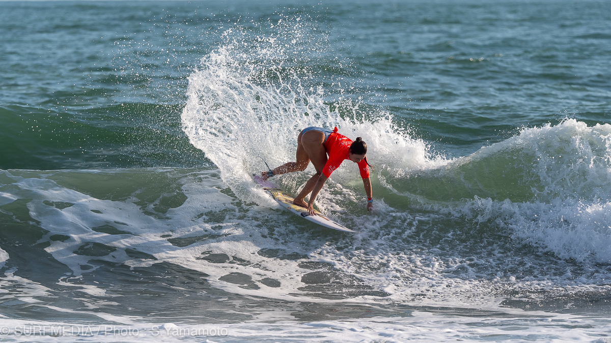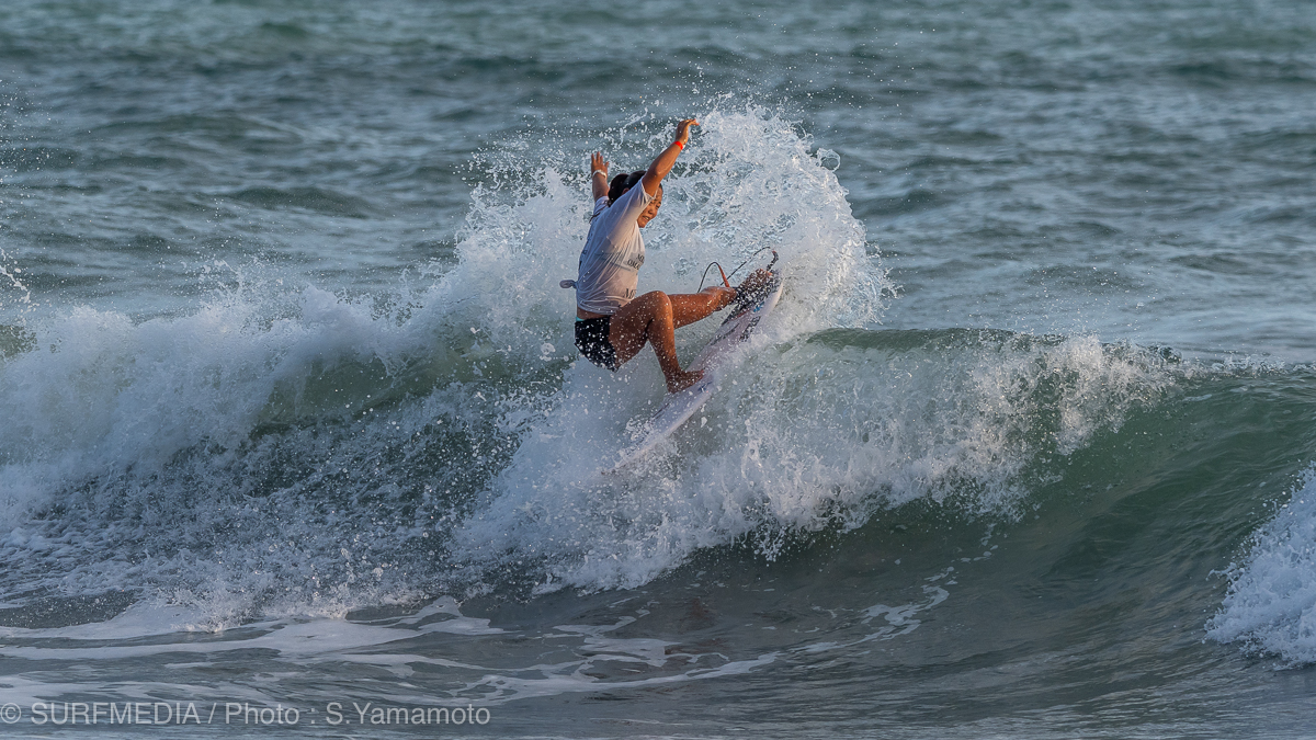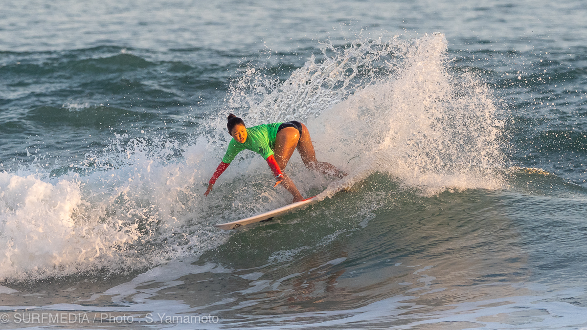 ヒート3では積極的に波を攻めた鈴木莉珠がトップ通過。草深心虹が逆転で2位に入り、川瀬心那を抑えた。最終ヒート4は地元の佐藤李が試合をリードするも、同じく地元の池田美来が入れ替わりで首位に。さらに窪田怜が後半に連続で波を掴み、渾身の演技で逆転。明日への切符を掴んだ。