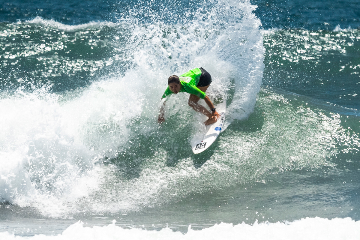 都築虹帆(JPN)はヒートの大半をファーストウェイブを待つことに費やし、女子最高シングルウェイブ・スコアとなる8.17を勝ち取った。しかし2本目の波を見つける時間が足りず、リパチャージに回ることとなった。