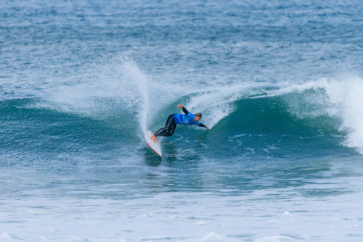 彼のクラシックな直立スタイルで8.50を獲得した。重要なオープニングのノーズライドに、長く続くカーブと深いボトムターンが組み合わさり、このヒート最高得点をもたらした。