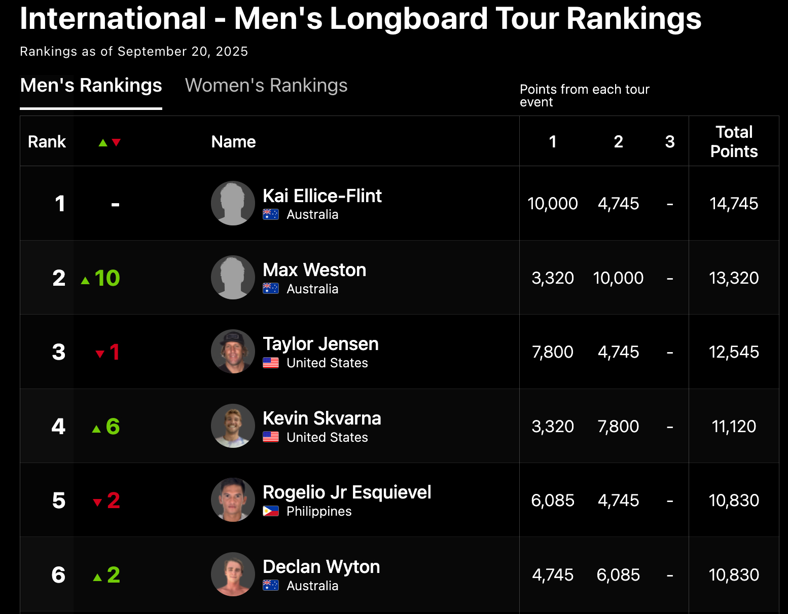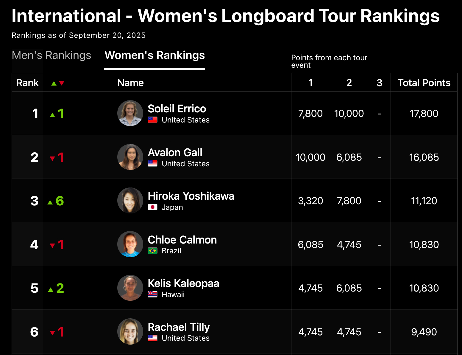 大会終了時点で、6名のサーファーがトップ8を確定させ、2025年サーフシティ・エルサルバドル・ロングボードチャンピオンシップでの世界ロングボードタイトル争いに臨むこととなった。