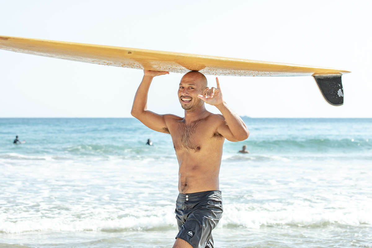 3度のJPSAグランドチャンピオンで、海外でも輝かしい実績を作り、東京オリンピックでは日本代表のキャプテンを務め、日本初のメダル獲得に尽力。S.LEAGUEのチェアマンに就任し、日本のサーフィン界の舵取りを担う大野修聖。