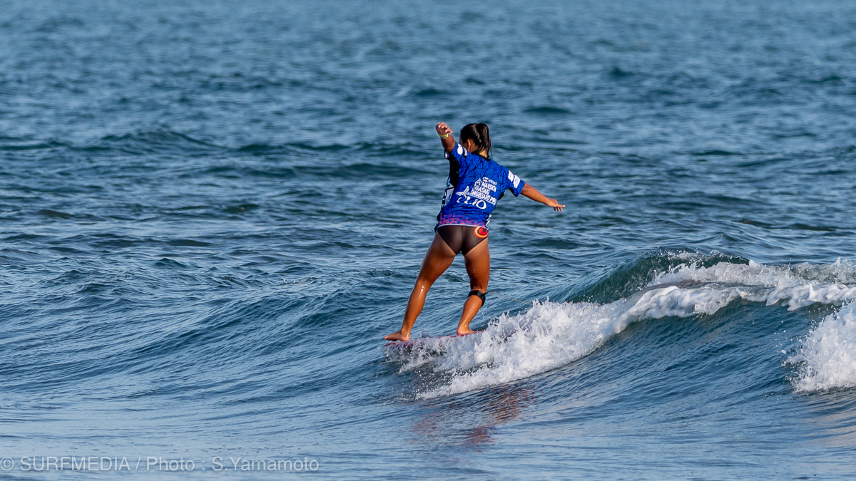 ランキング6位の佐久間由佳が欠場し、代わって《S.TWO》ランキングトップの原田來愛がオルタネートとしてR-3から出場。女子は《S.ONE》が10名、《S.TWO》が19名に加え、茅ヶ崎市長杯ロングボードで優勝しローカルシードを得た中学1年生・内田鈴音を含め、合計30名がエントリーする。