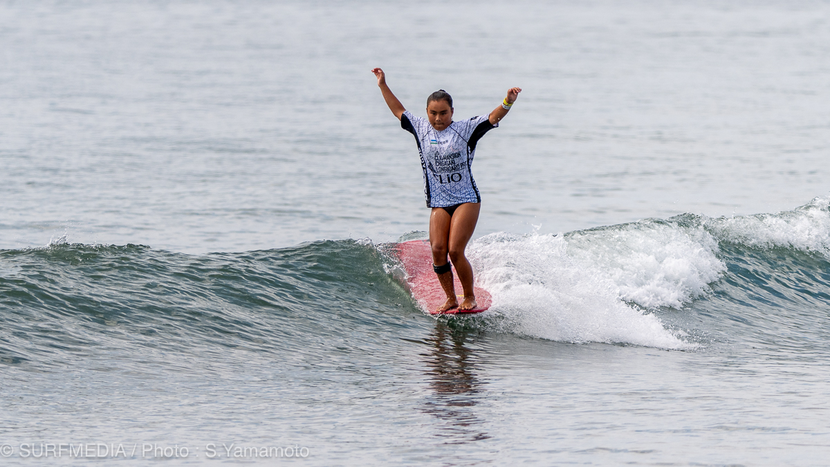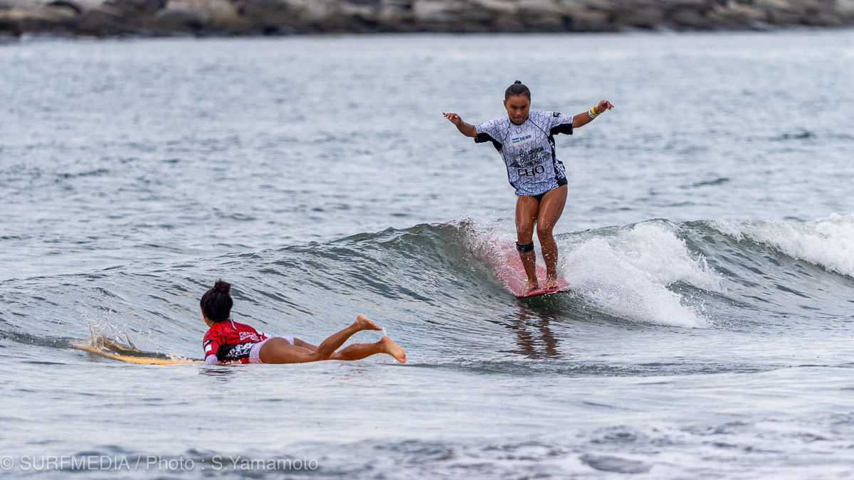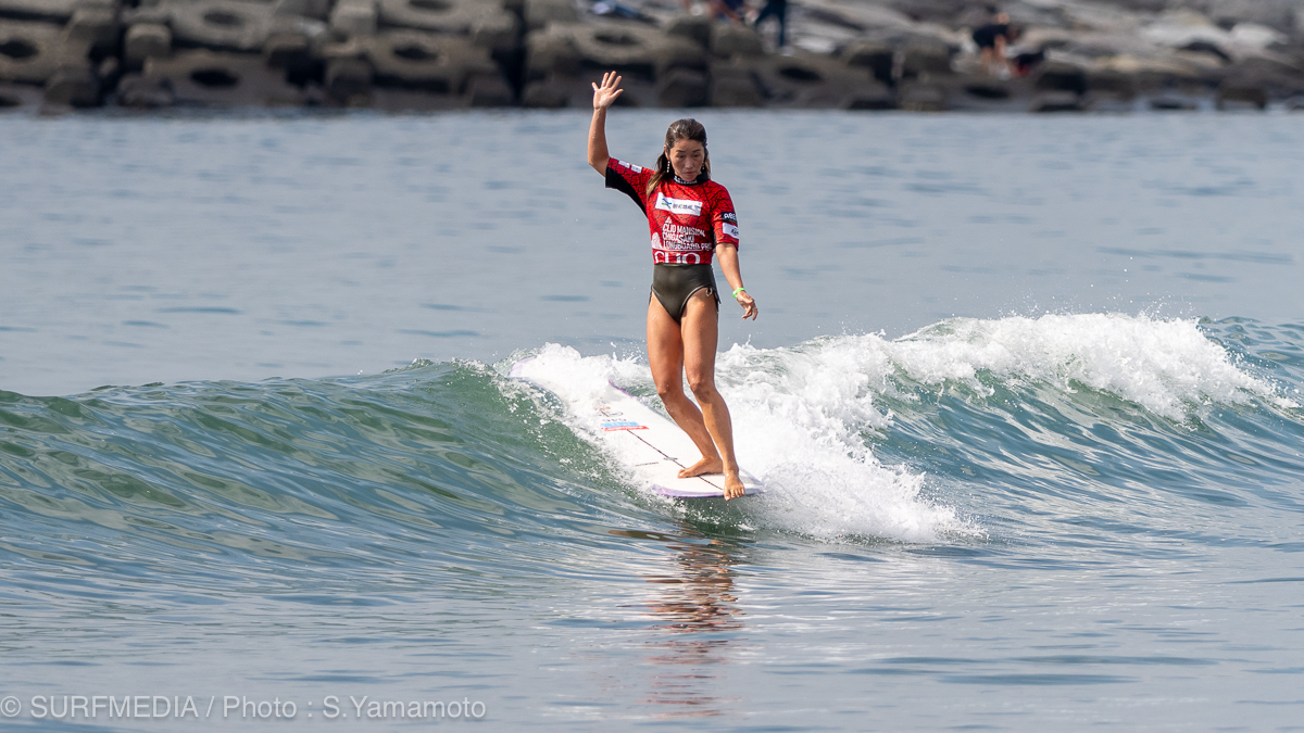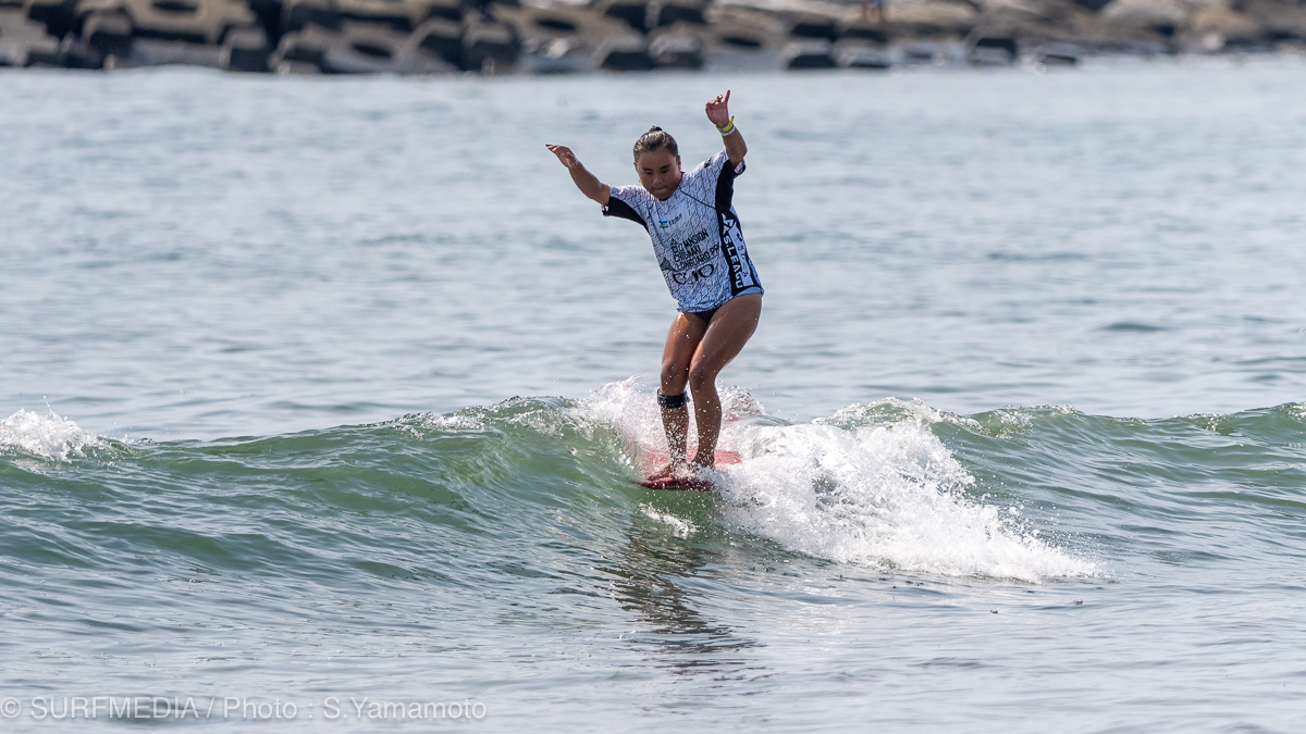 女子のセミファイナル。ヒート1は吉川広夏と山口晴菜の対戦。吉川は序盤から安定感抜群のライディングで主導権を握る。フェイドターンでラインを広く使い、ノーズでも余裕の時間を見せつける。対する山口はライト、レフト問わず果敢にチャレンジしたが、スコアを伸ばすことができず。吉川が堂々とファイナルへ進出した。