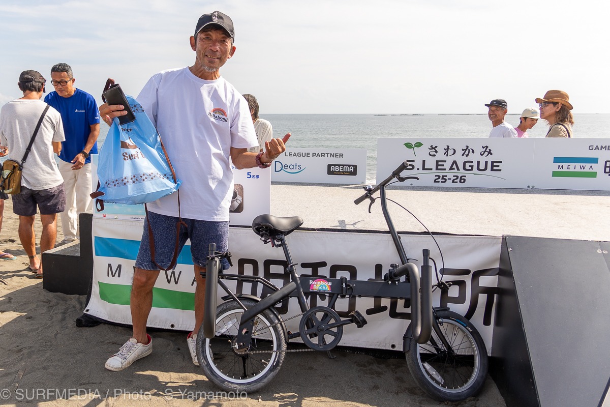 RAINBOW 折り畳み自転車(キャリア付き)をはじめ、BGGM ULTIMATE COOLER BAG、BGGM WET DRY BAG、BGGM WATER PROOF MINI TOTE、さらにはスターバックスの商品券など、魅力的な景品が次々と当選者の手に渡った。