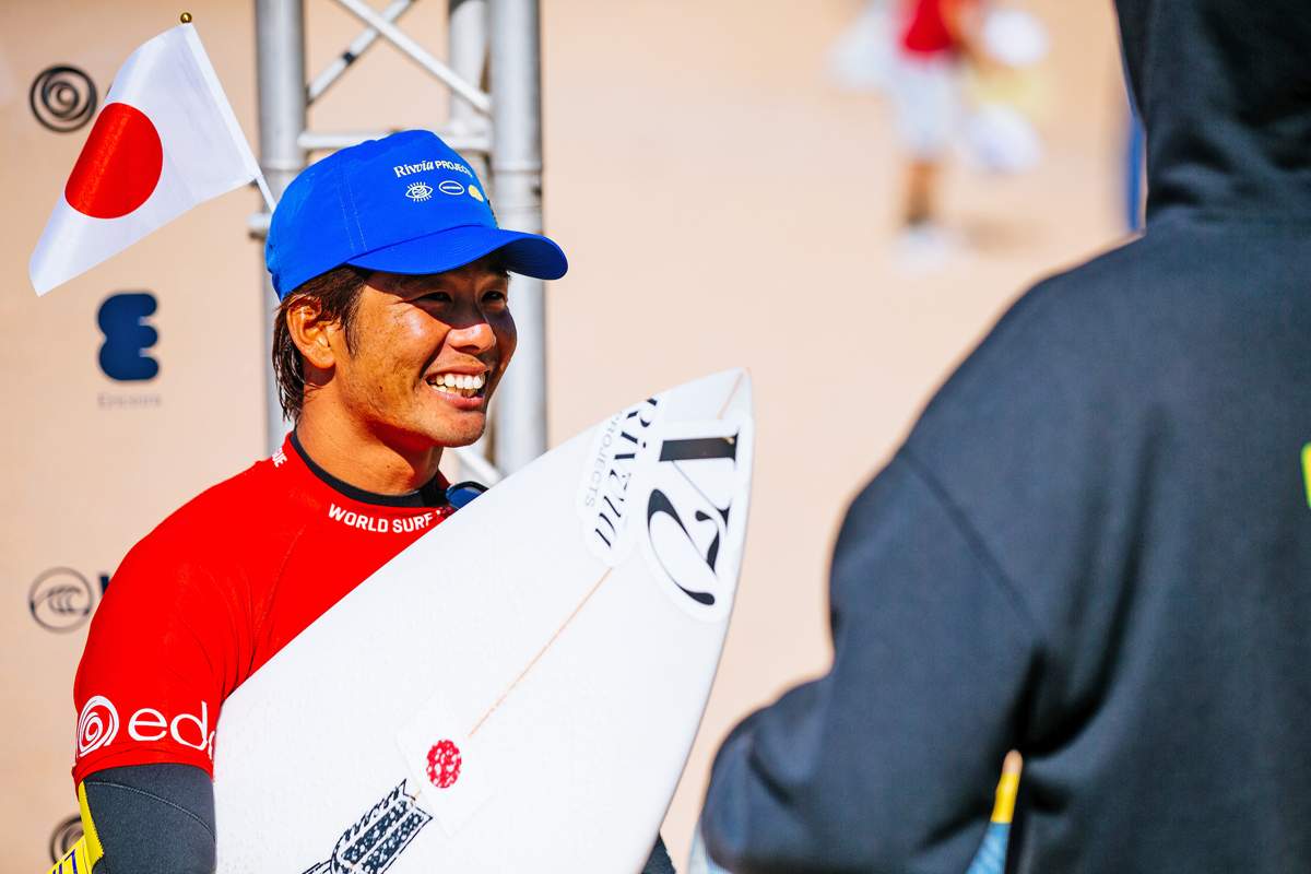 「ここにはそんなに多くの日本人選手がいるわけではないですが、何人かコンペティターがポルトガルに来ています。それで、みんなで、特に日本人選手を応援し合っています。今、ケイジロウが海に入っている。僕たちは結束の固いチームなので、誰かがファイナルデーまで勝ち進んでくれることを願っています。」