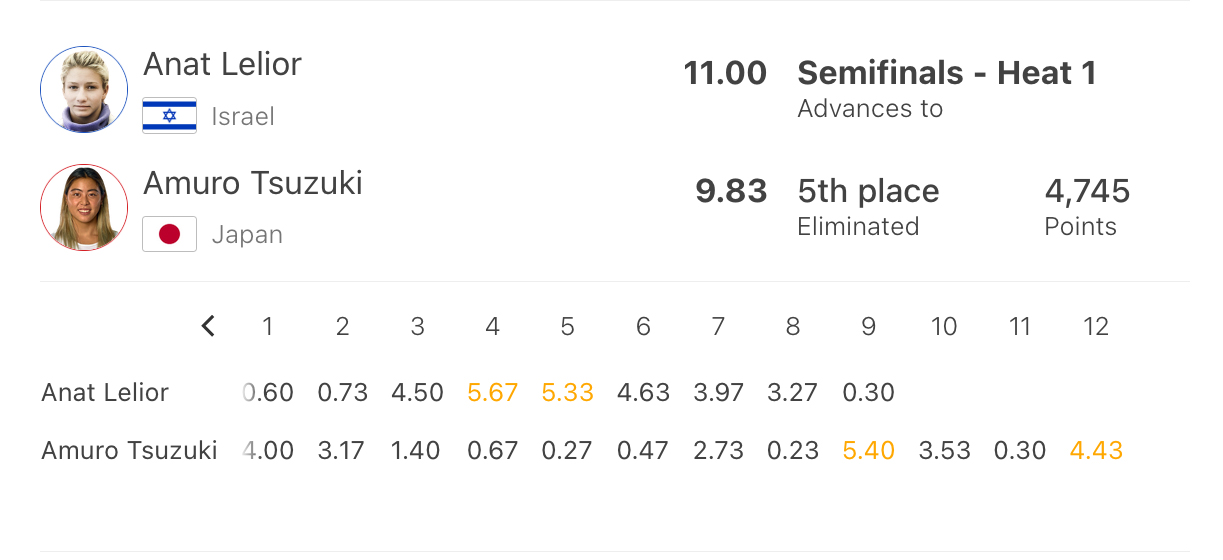レリオールはバックハンドで4.50をスコア。バックアップ3.17をスコアして都筑はヒートをリード。しかし、レリオールは5.67をスコアして逆転。