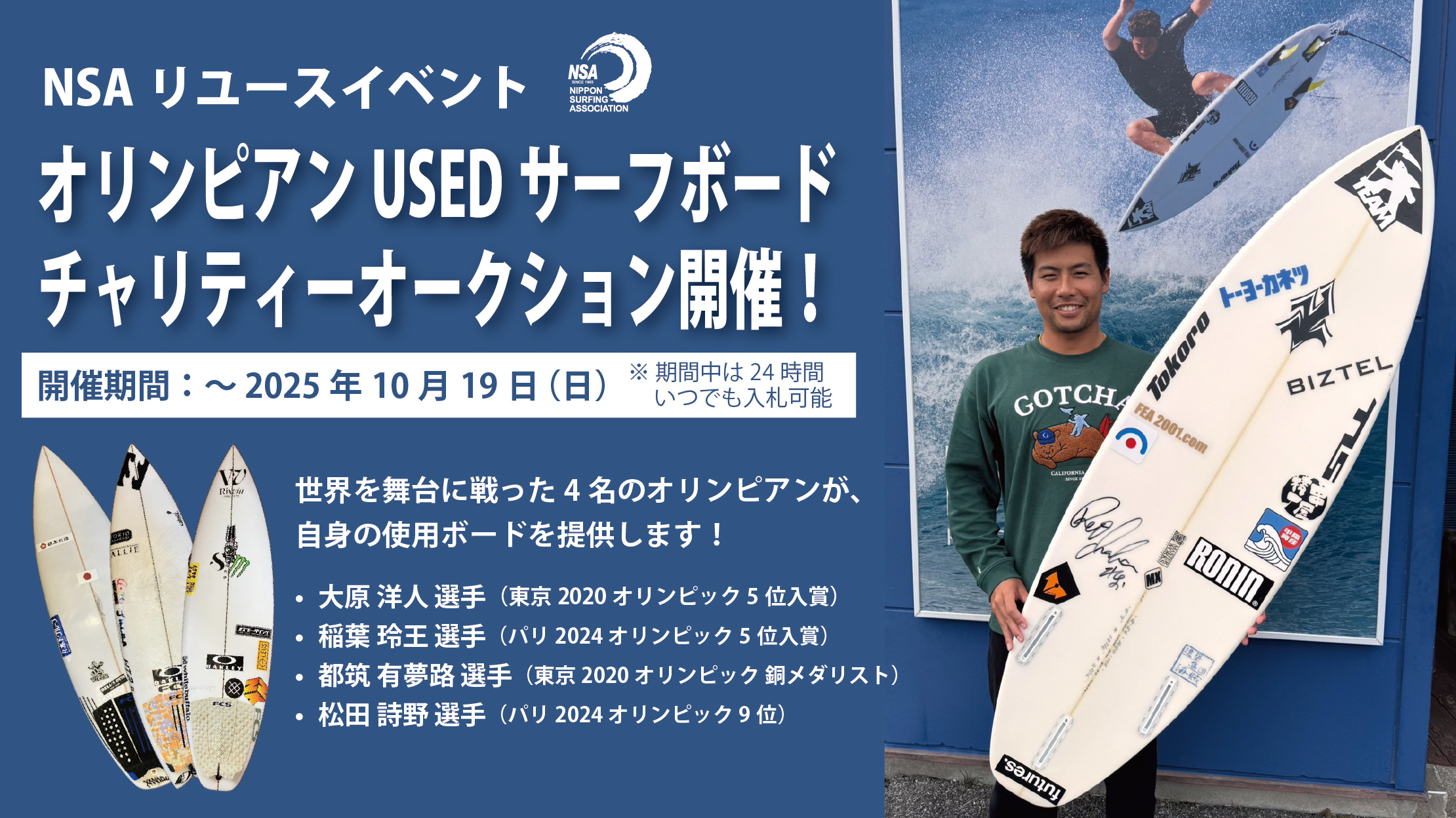 • イベントページ: https://www.nsa-surf.org/general/olympian-usedbord-charityauction2025/