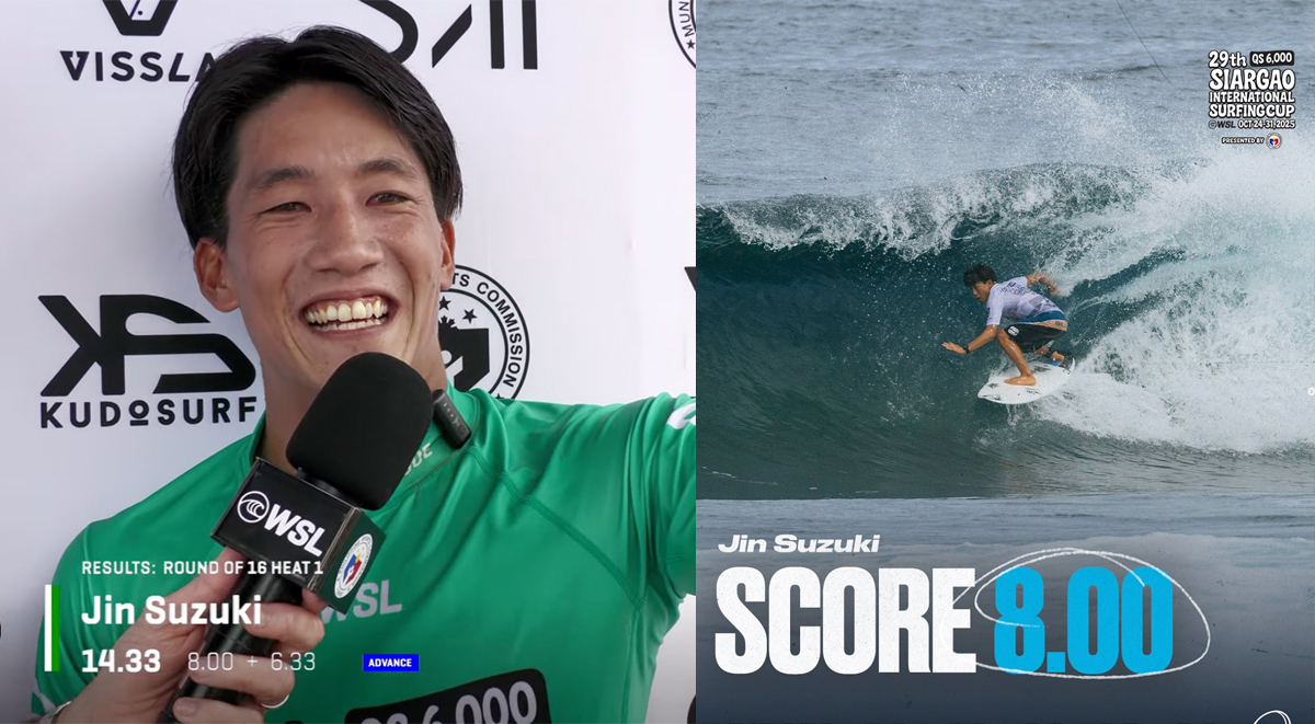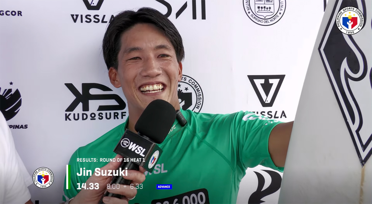 「ラウンドオブ16ということで、本当に重要な瞬間です。勝ち上がれて、とても嬉しいです」と鈴木が語った。「とても緊張しました。良い波がたくさんあり、エアも数多く決めました。最初の波で良いスコアを出し、3本目の波では良いバレルを見つけ、素晴らしいスコアを獲得できました。本当に嬉しいです。バレルの中で何度もポンプをしなければなりませんでした。本当に素晴らしかったです。クラウドナインが大好きです。」