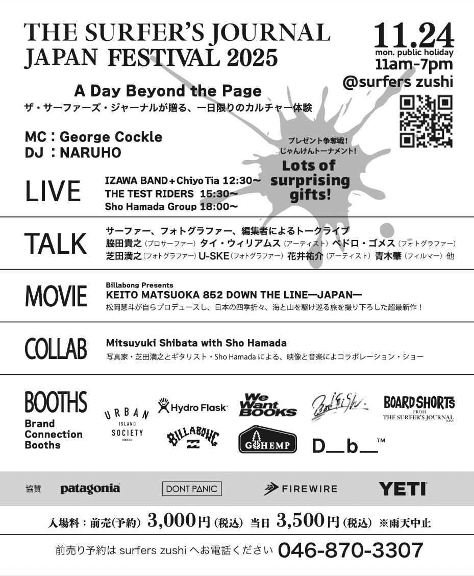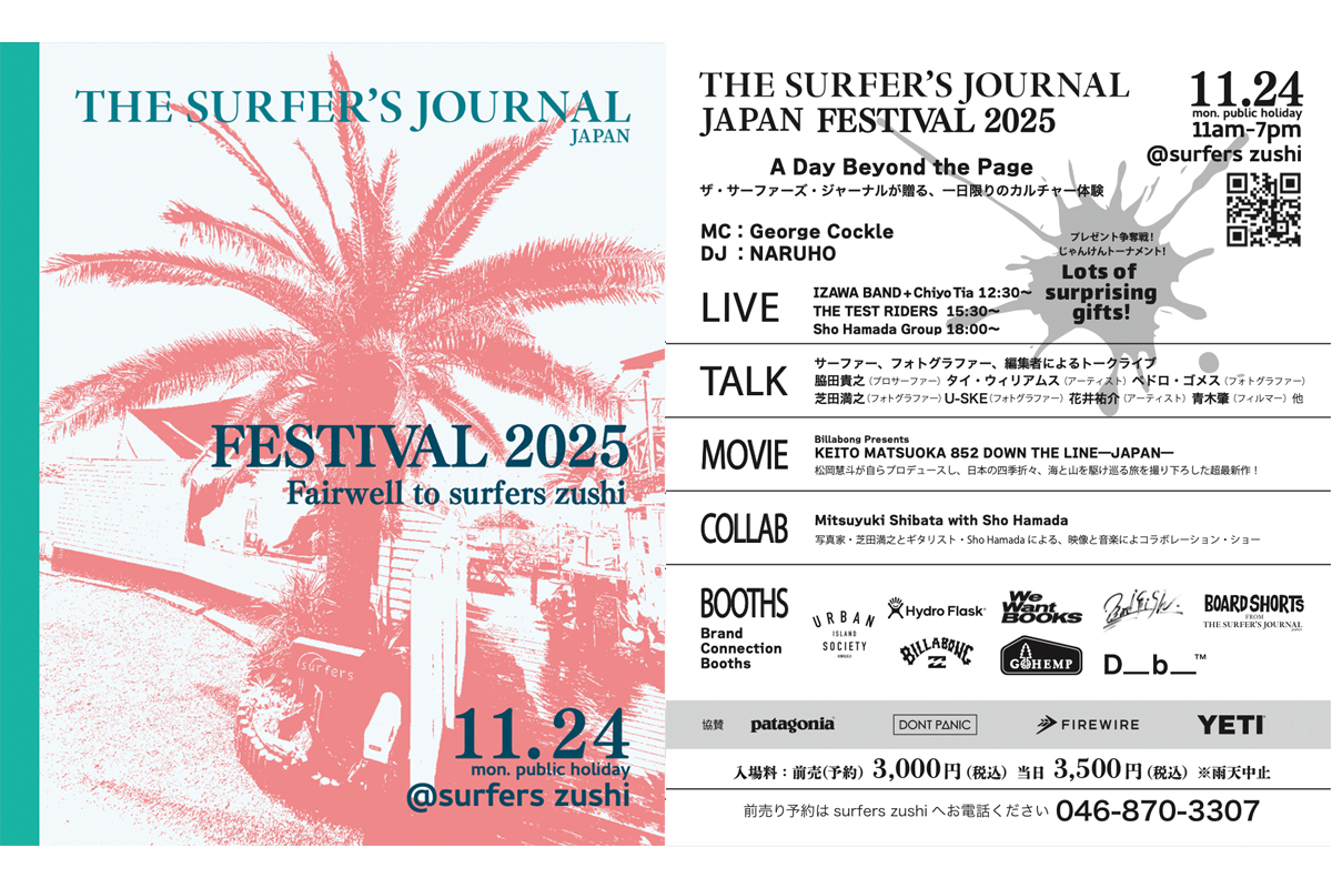 そんな「surfers逗子」で11月24日(月・祝)、ザ・サーファーズ・ジャーナル・ジャパン主催の特別なフェスが開催される。