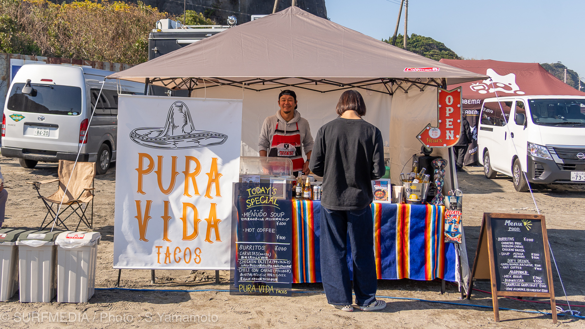 フードブースには「PURA VIDA」が出店。TACOSやBURRITOSなど、本場の味が楽しめる。