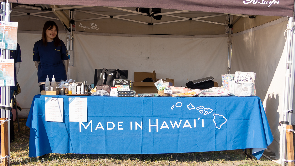 さわかみハワイブースには、南国ムード漂うトロピカルアイテムがずらり。