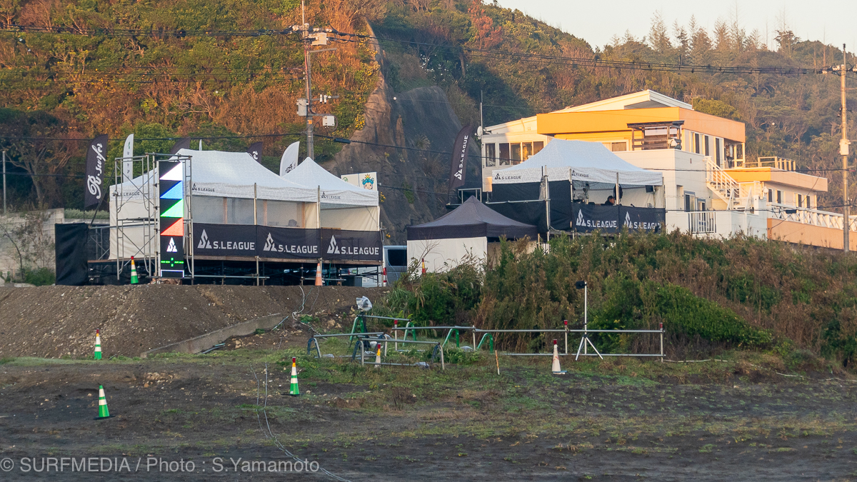 ジャッジブースは高台に設置され、岬まで見渡せる見晴らしの良いロケーション。