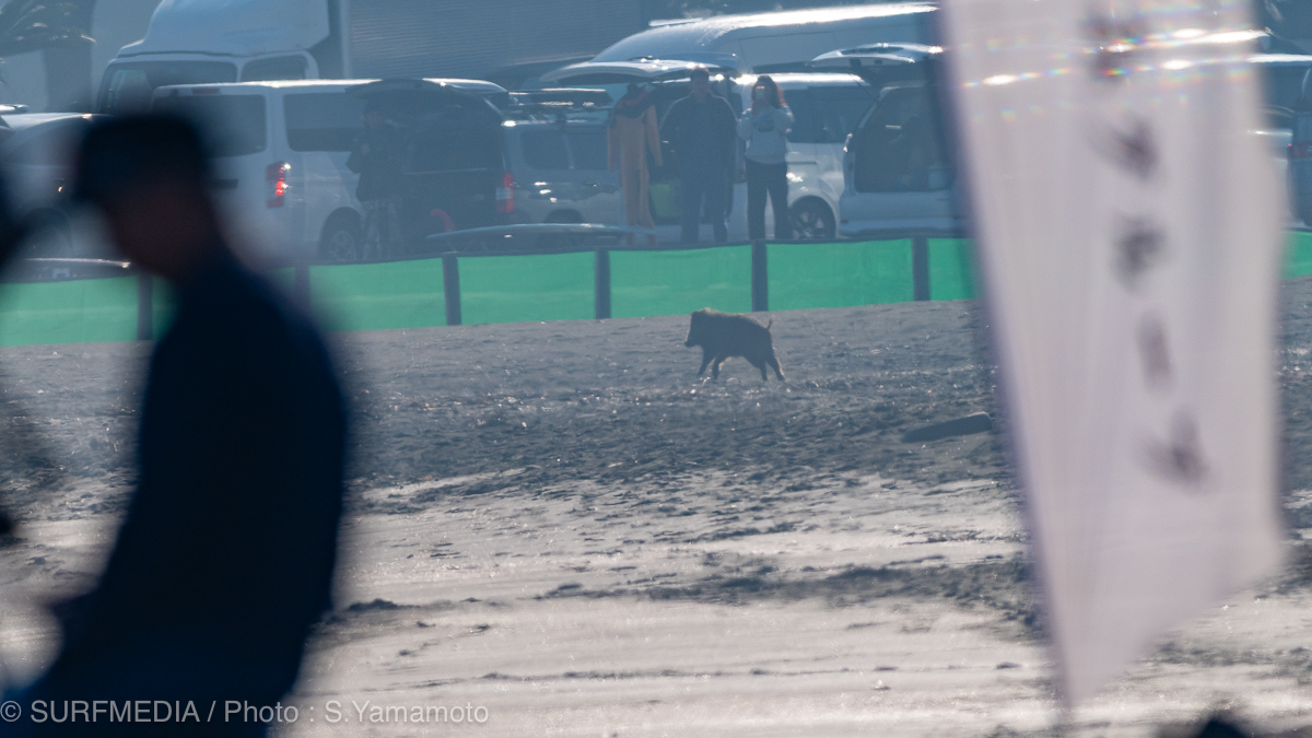 試合中には、なんと熊ならぬ“猪”が乱入。まさに猪突猛進でビーチを駆け抜けていった。