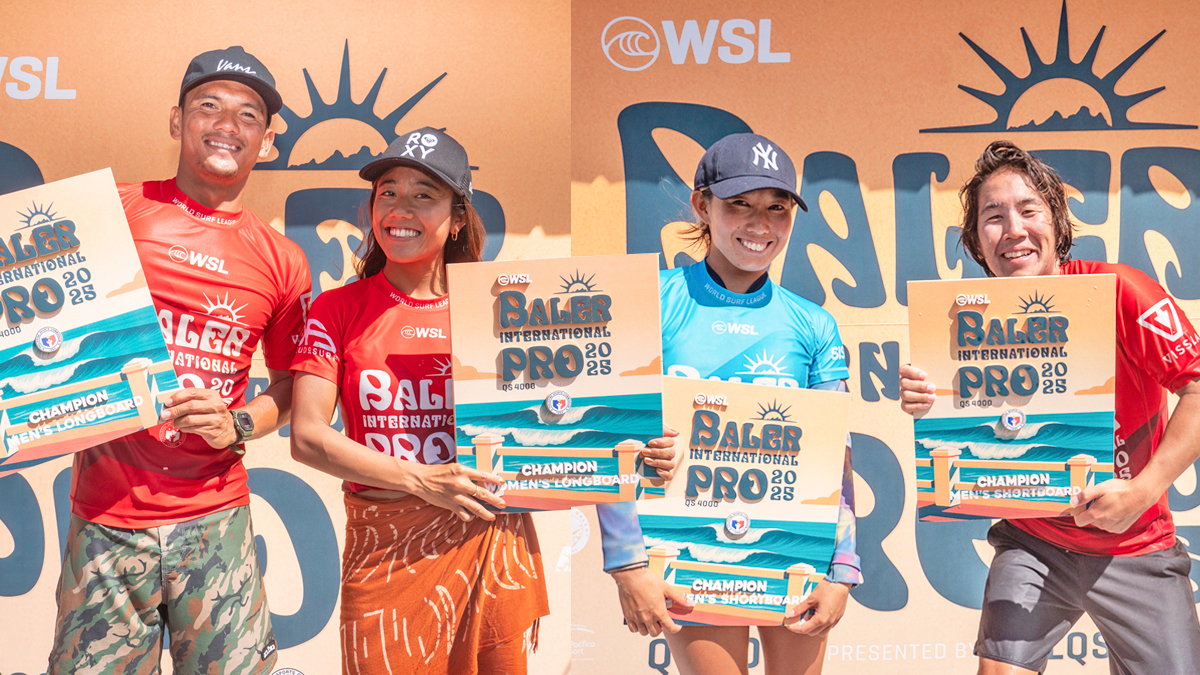 西優司(JPN)が自身初のQS優勝を果たした一方、野中美波(JPN)、ロジェリオ・ジェイ・アール・エスキヴェル(PHL)、田岡なつみ(JPN)は、フィリピンにおけるサーフィンの発祥地で開催された大会で、2024年に続き再び勝利を手中に収めた。