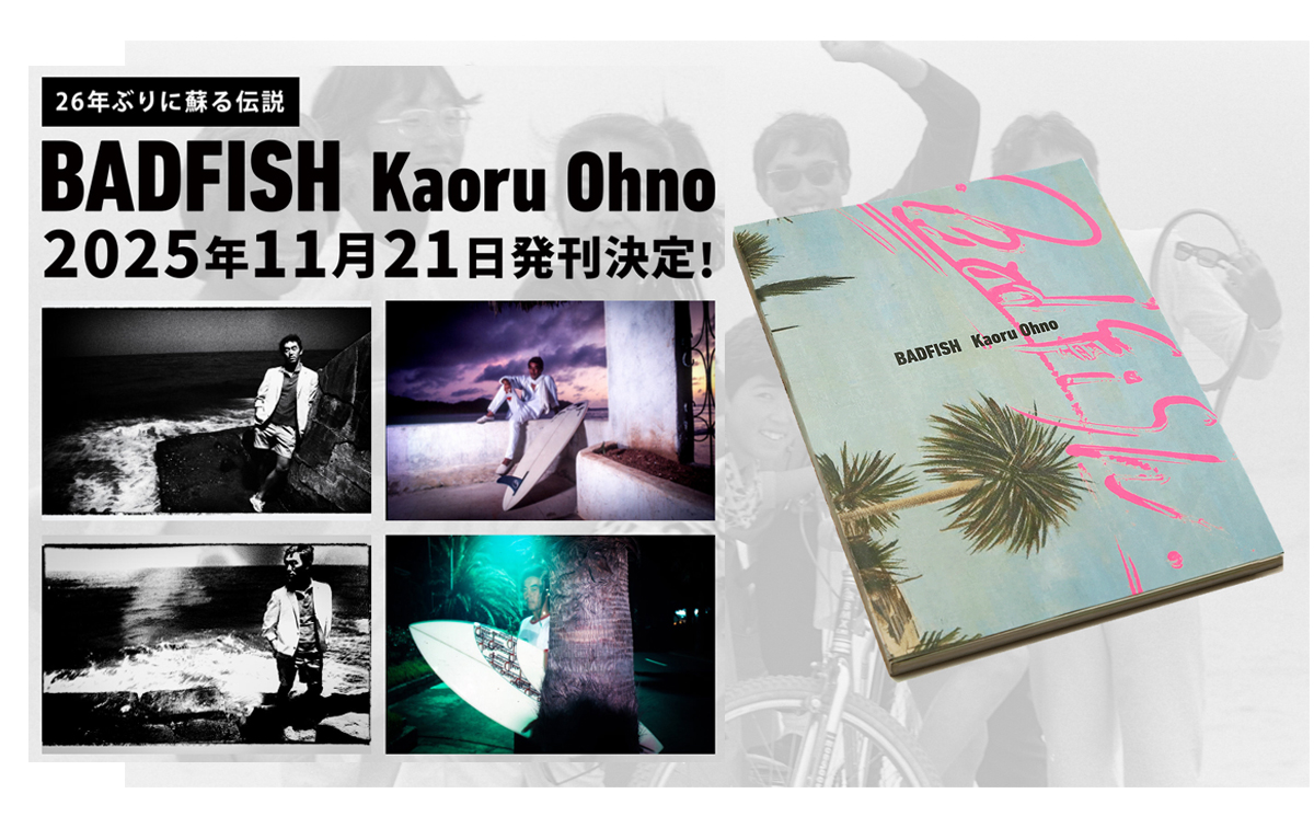 「もし薫さんが⽣きていたら、今のサーフシーンをどう⾒ただろうか? 若い世代にどんなメッセージを伝えていただろうか?」そんな思いを胸に、盟友である写真家・芝⽥満之の元に 3 名のクリエイターが集結。彼の⽣き⽅、思想、そしてカルチャーへの影響を現代に伝えるべく、書籍『BADFISH Kaoru Ohno』が制作された。