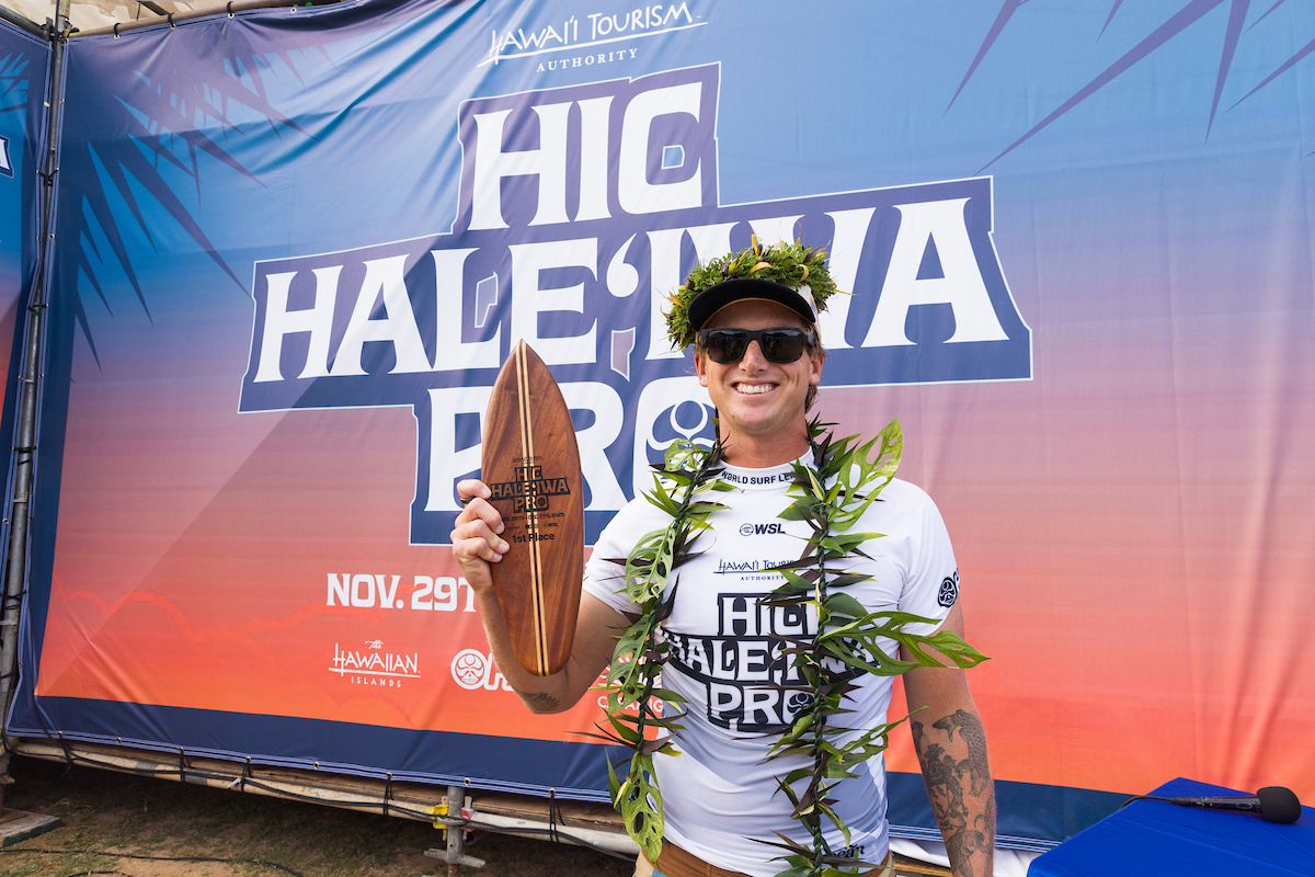 ハレイワ、オアフ島、ハワイ、USA(2025年12月5日金曜日) –ベティルー・サクラ・ジョンソン(HAW)とフィン・マクギル(HAW)が、ワールド・サーフ・リーグ(WSL)クオリファイシリーズ(QS)2000HTA HIC ハレイワ プロで優勝した。
