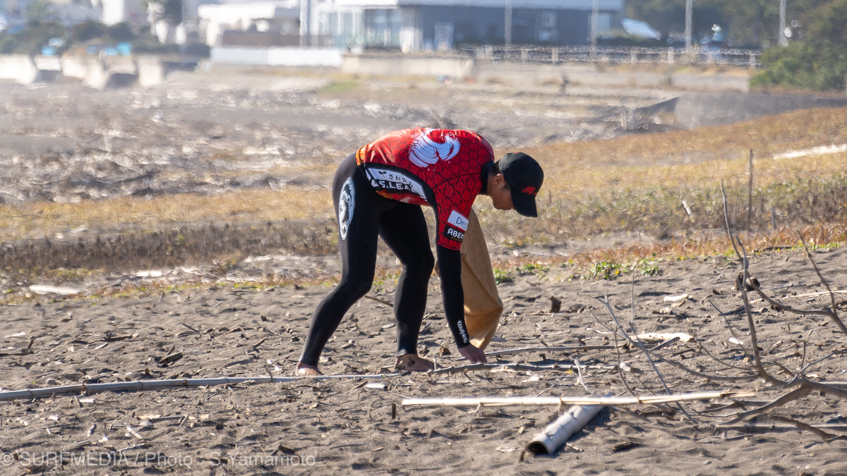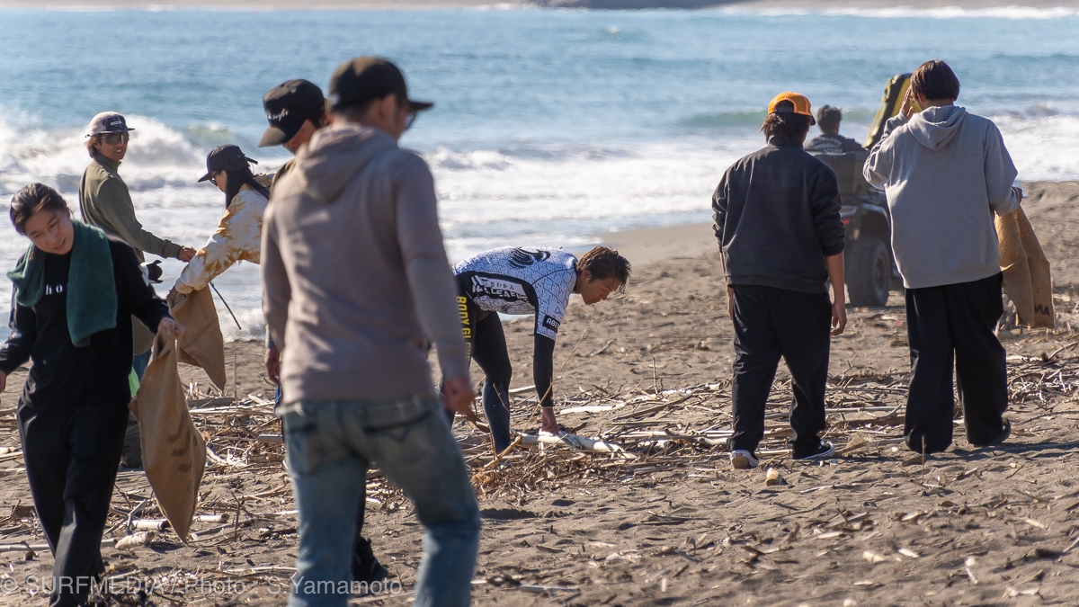 ReWaveによるビーチクリーンを実施。会場に集まった選手、スタッフ、ギャラリーが一体となり、海岸清掃。