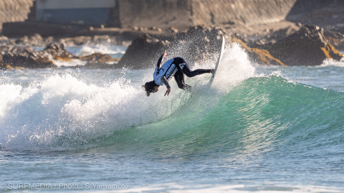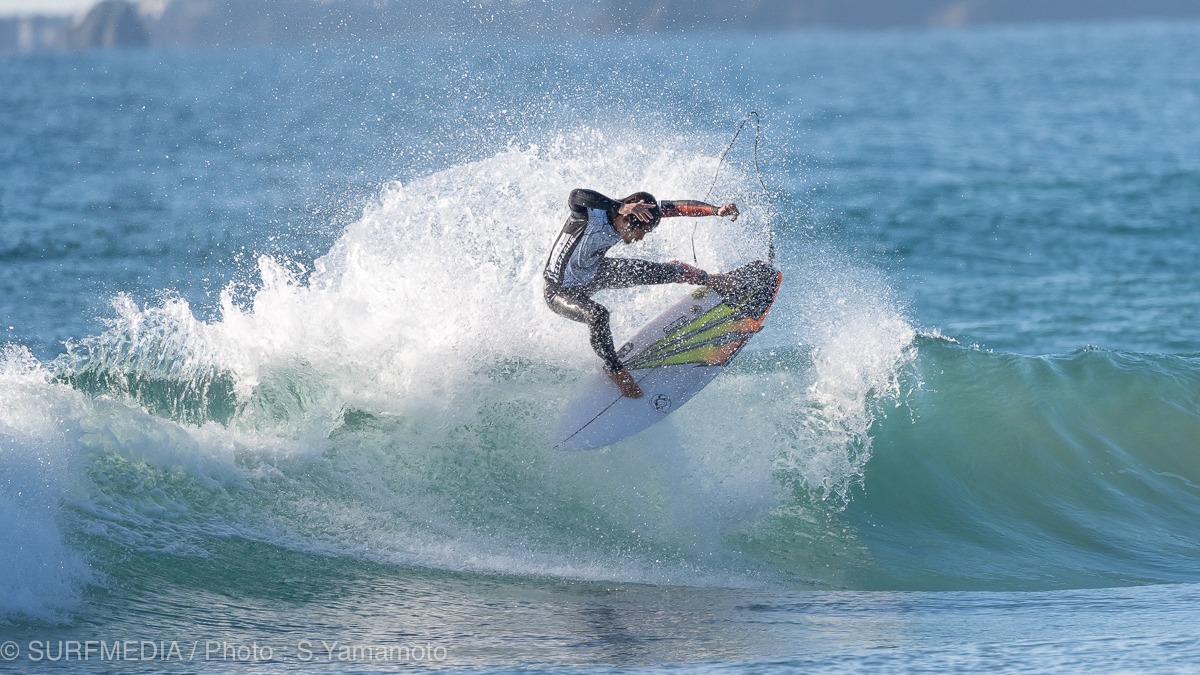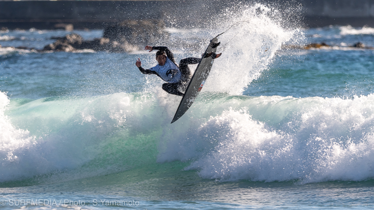 千葉県鴨川市東条海岸(マルキポイント)で開催中のJPSA さわかみ S.LEAGUE 25-26《S.ONE》第3戦「鴨川プロ」は大会最終日を迎えた。天候は晴れ、風はサイドオフ。波のサイズはコシ〜ハラで、朝7時満潮から昼にかけて引いていく潮回りとなった。