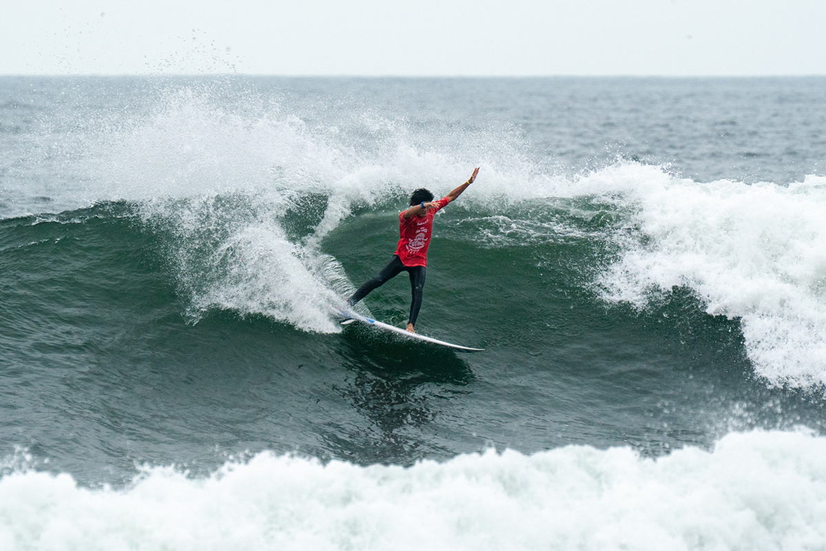 背の高い13歳は、プンタ・ロカスのライトで成熟したトップからボトムまでのバックハンドサーフィンを披露し、大会現時点で最高のシングルウェイブ・スコアとなる9.33をスコア。驚異的なスピード管理能力を見せつけた。