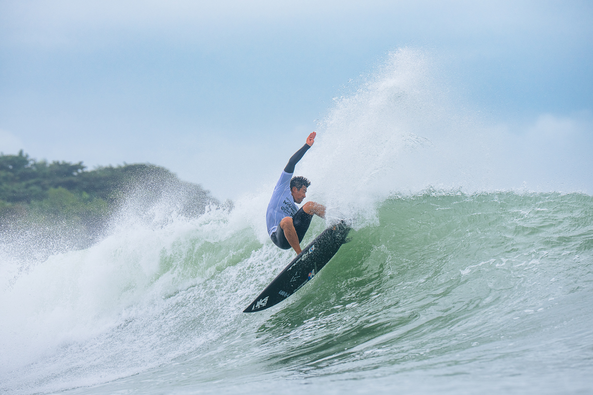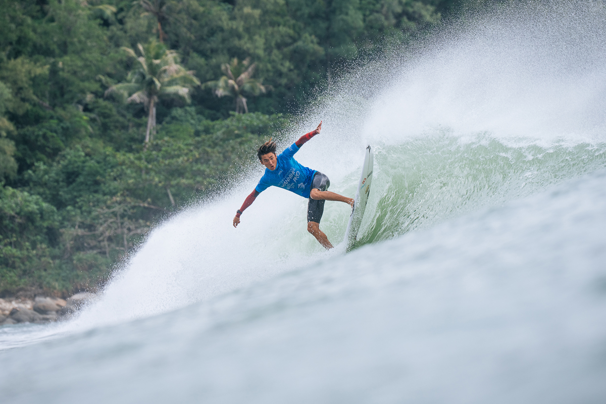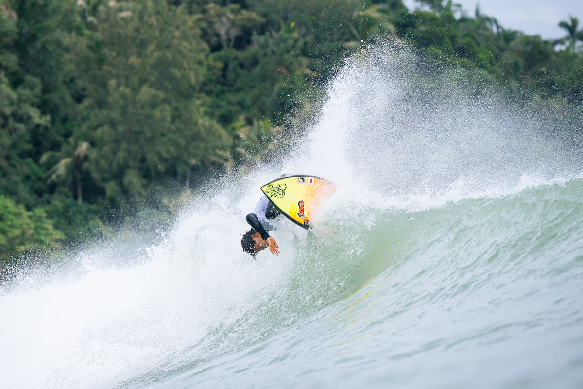 小林はラウンドオブ16で男子最高ヒートスコアを記録し、クオーターファイナルでは7.83のシングルウェイブ・スコアも獲得したが、渡邉の鋭いバックハンドの安定性が勝った。男子プロジュニア準決勝にも進出している渡辺は、海南初参戦ながら大きな存在感を示している。