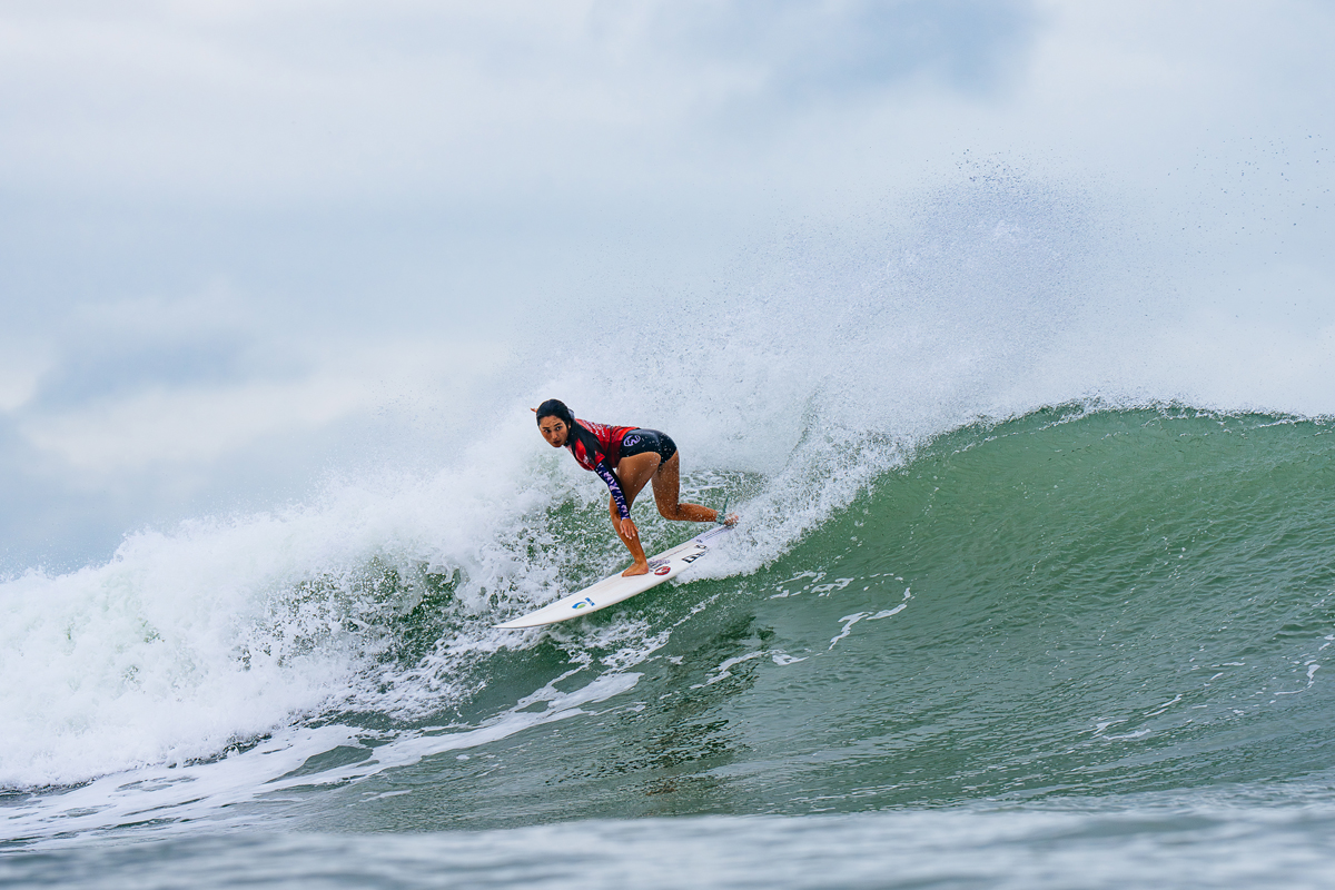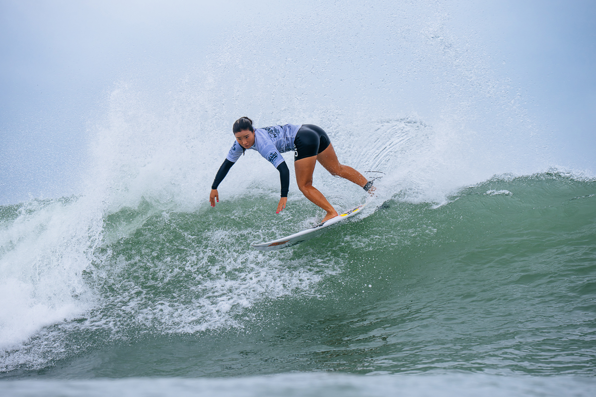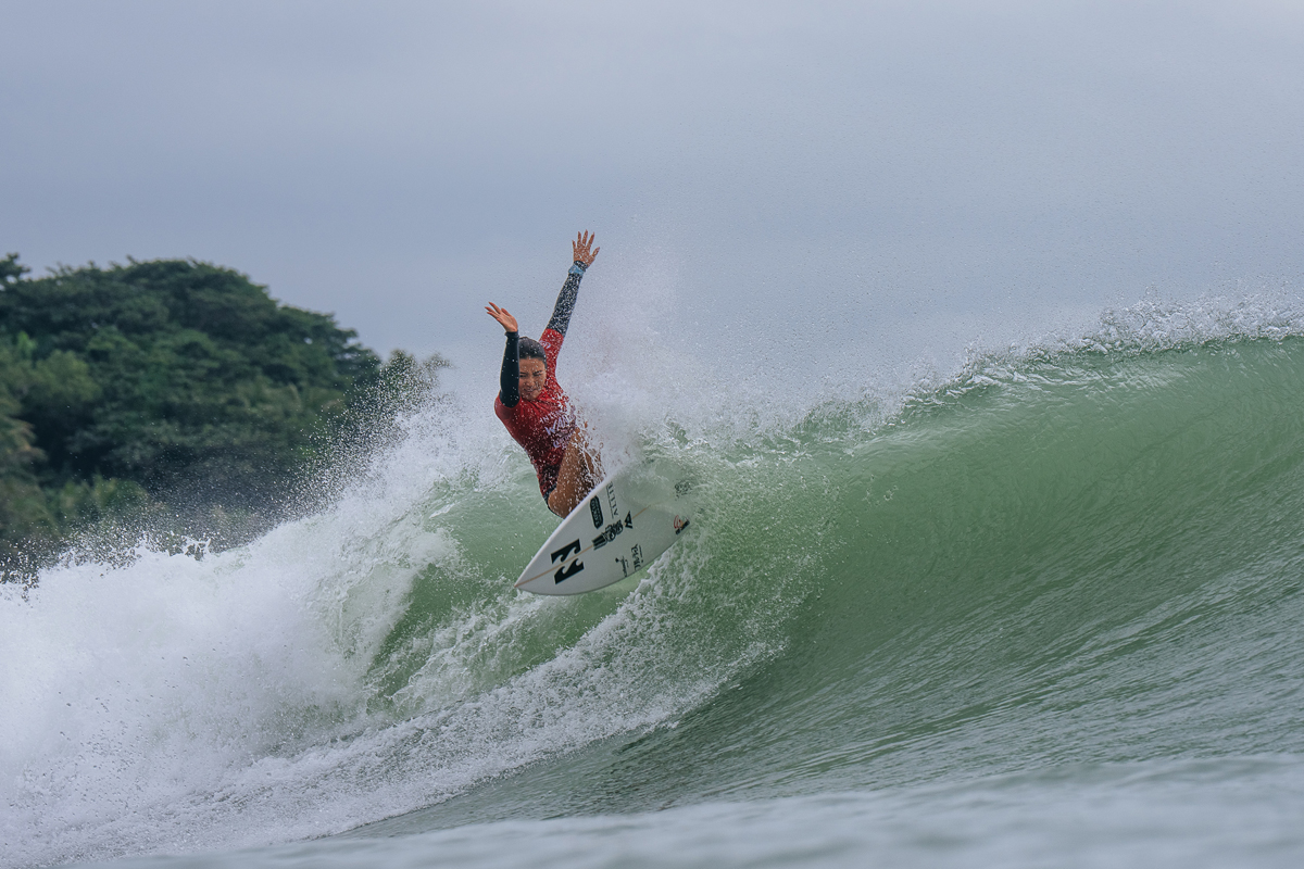 松田詩野(JPN)はフィリピン大会に続き、QS4000の準決勝進出を2大会連続で果たした。バックハンドもソリッドなのだが、このグーフィー・フッターの最大の武器はフォアハンドであり、この2大会でその強さが際立っている。2024年パリオリンピック代表は本日2ヒートで鋭いフォアハンドのレールワークを披露し、両ヒートで勝利を勝ち取った。