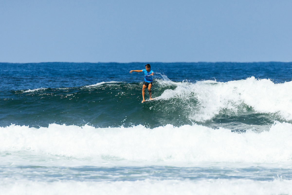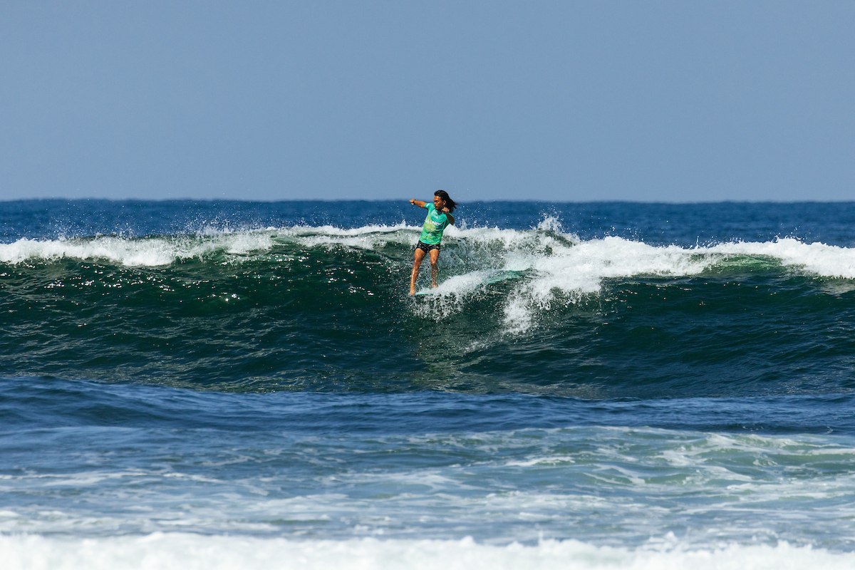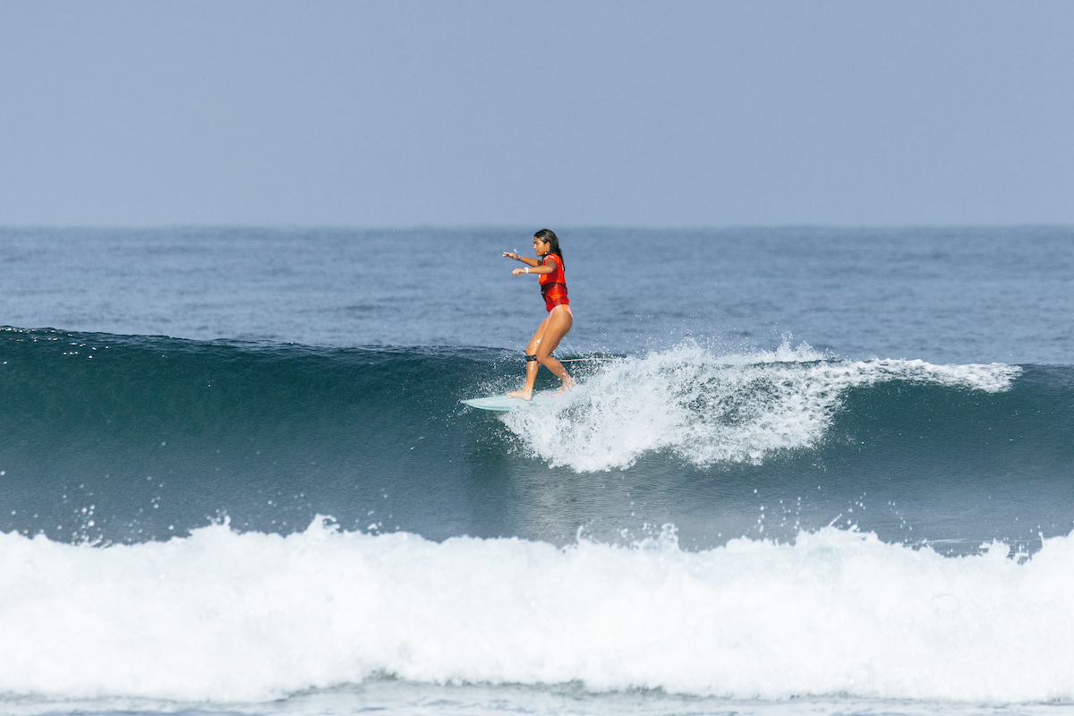 2025ロングボードツアー新人マリア・イラガン(USA)がモンザリザ・ポイントで2度目のソリッドなヒート勝利を勝ち取り、準決勝進出を決めた。WSL / Cait Miers