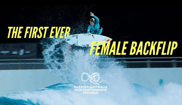 しかもそれは女子サーフィン史上初のバックフリップだ。しかも彼女は、その夜初めてのトライで成功させたのである。