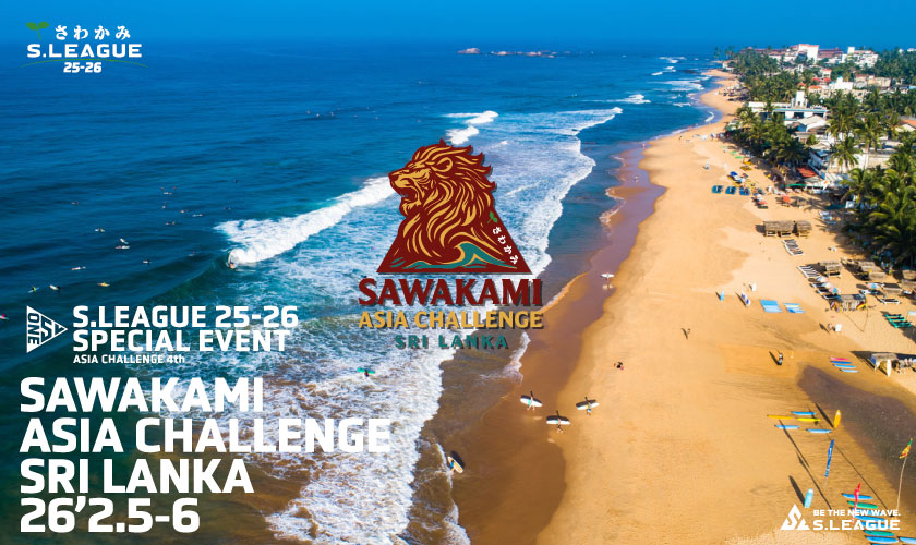 S.LEAGUE 特別戦「さわかみアジアチャレンジ」は、日本のJPSA(日本プロサーフィン連盟)がアジア各国のサーフィン組織やクラブと連携し、アジア全体の競技レベル向上を目指して開催している国際大会。