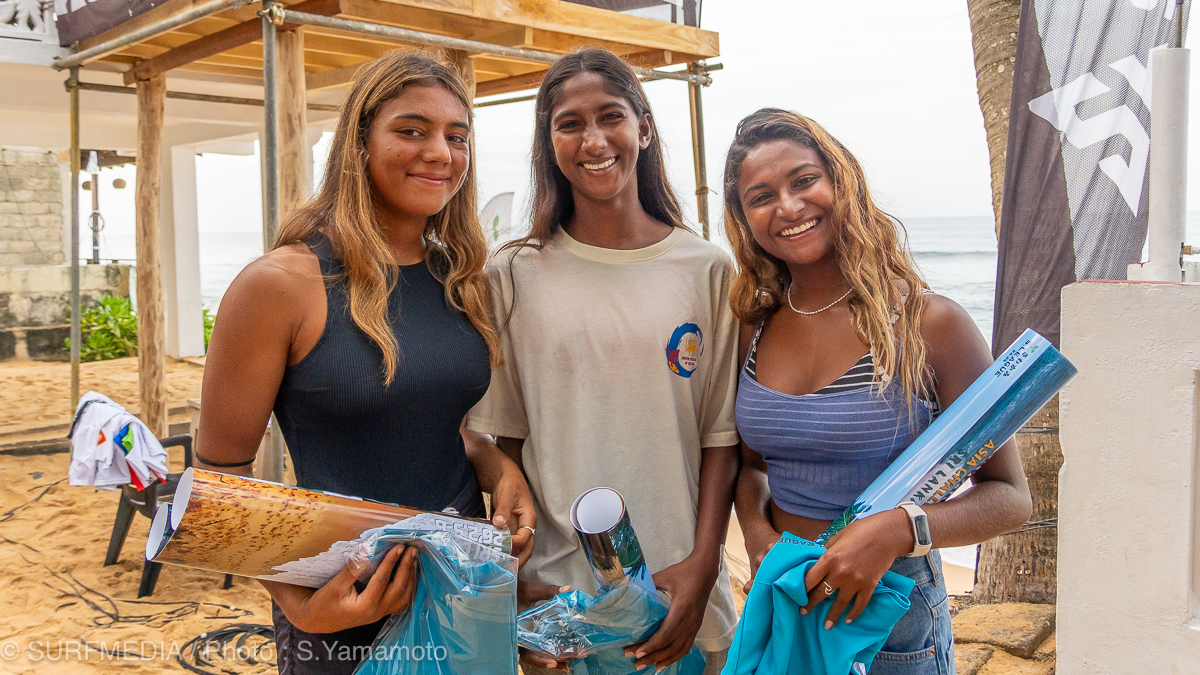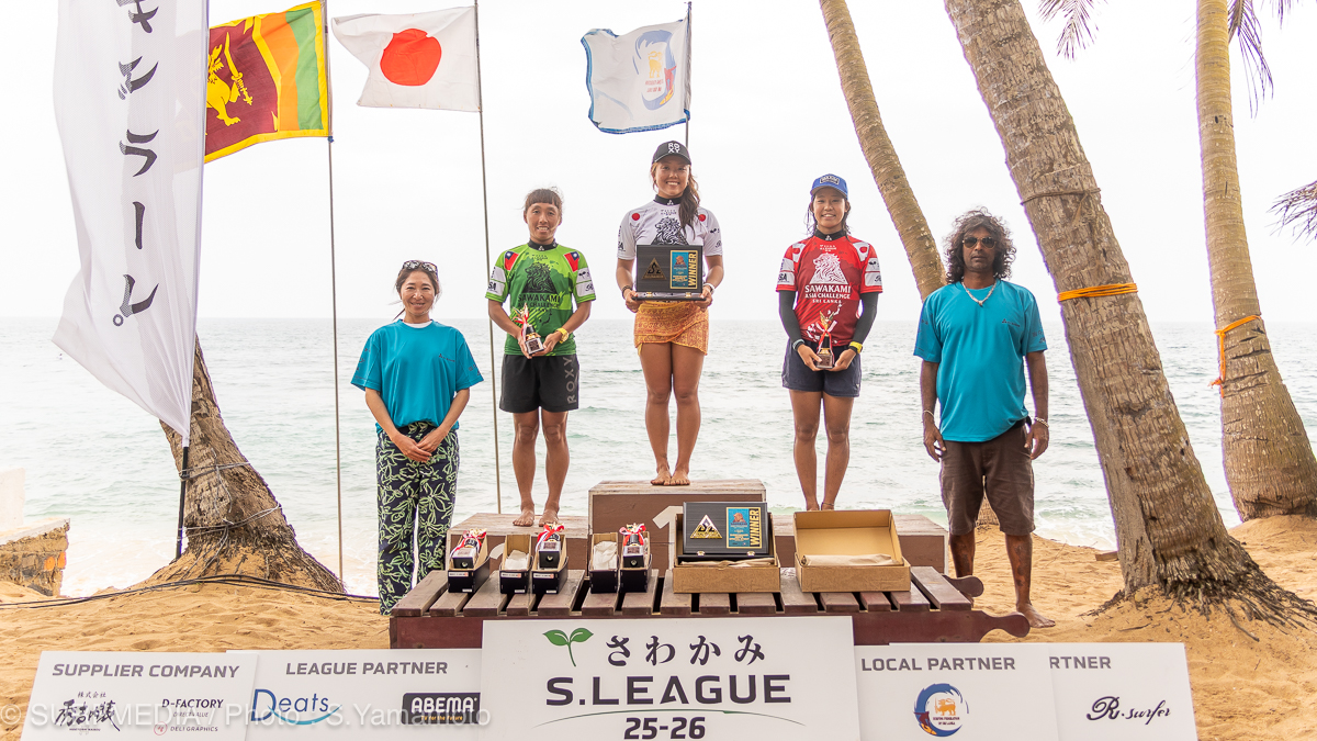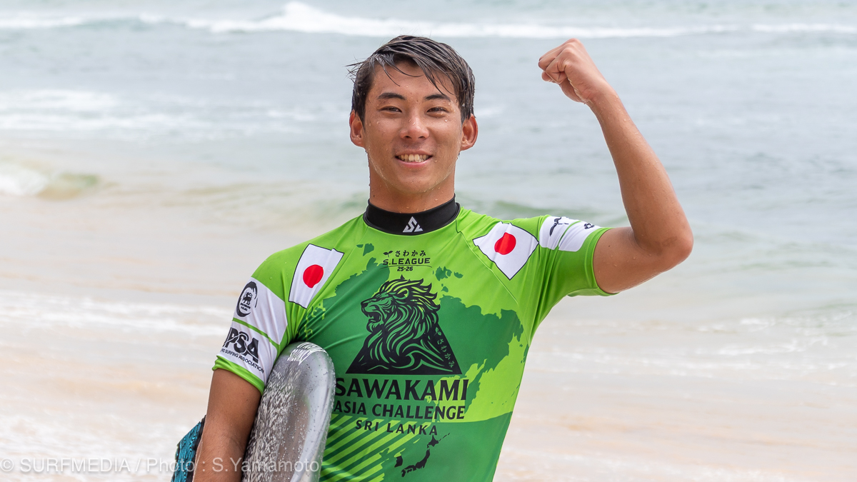 「優勝できて嬉しいです。スリランカは初めてで、練習の時は右の方のレフトにずっと乗っていて、その波に試合でも乗れたので良かったです。クラマス(バリ島)がすごく好きなので、次のクラマス(ショートボード第4戦)でも優勝できるように頑張ります」と佐藤李が語った。