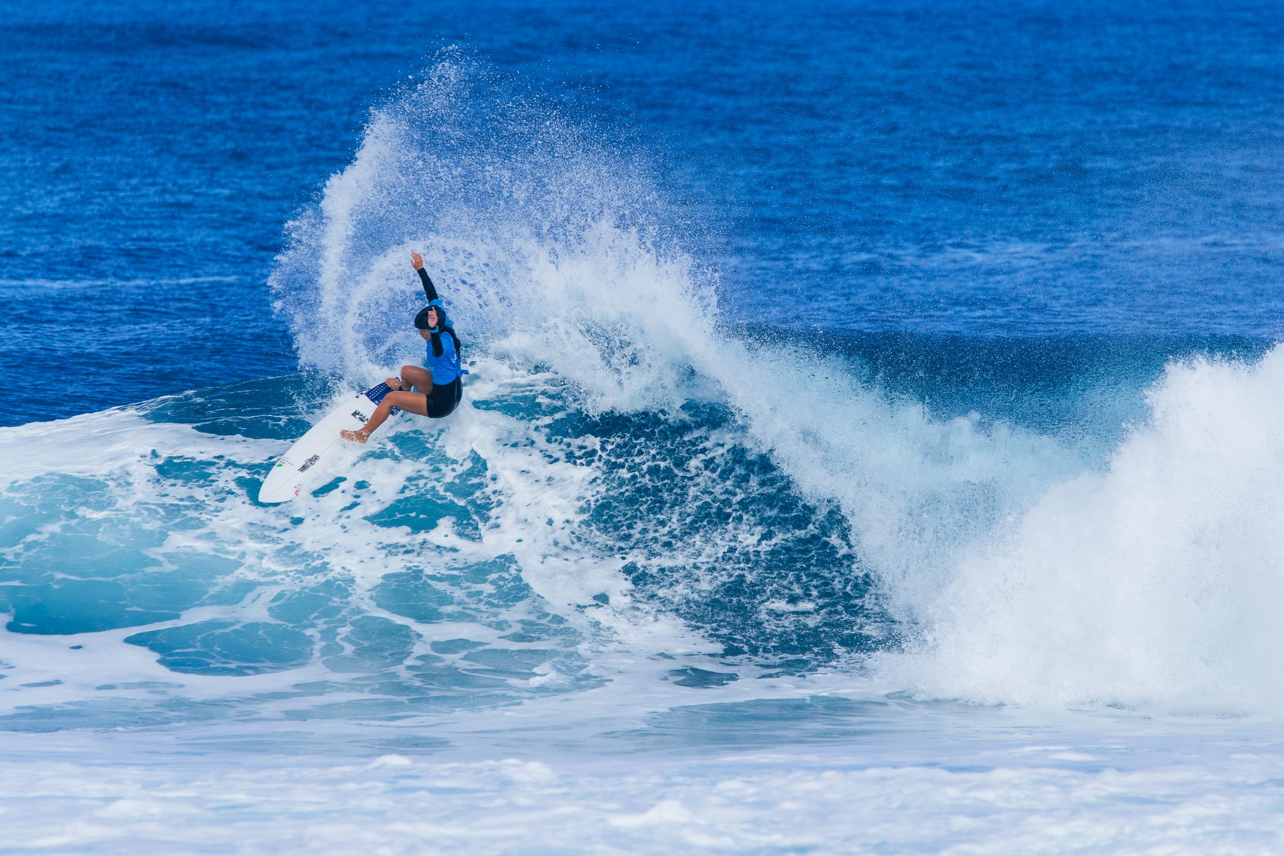 女子ラウンドオブ32ではH5で都筑有夢路 が、CTサーファーのガブリエラ・ブライアン (HAW) ゾーイ・マクドゥーガル (HAW) . エウェレイウラ・ウォン (HAW)という3名のハワイアンと対戦。