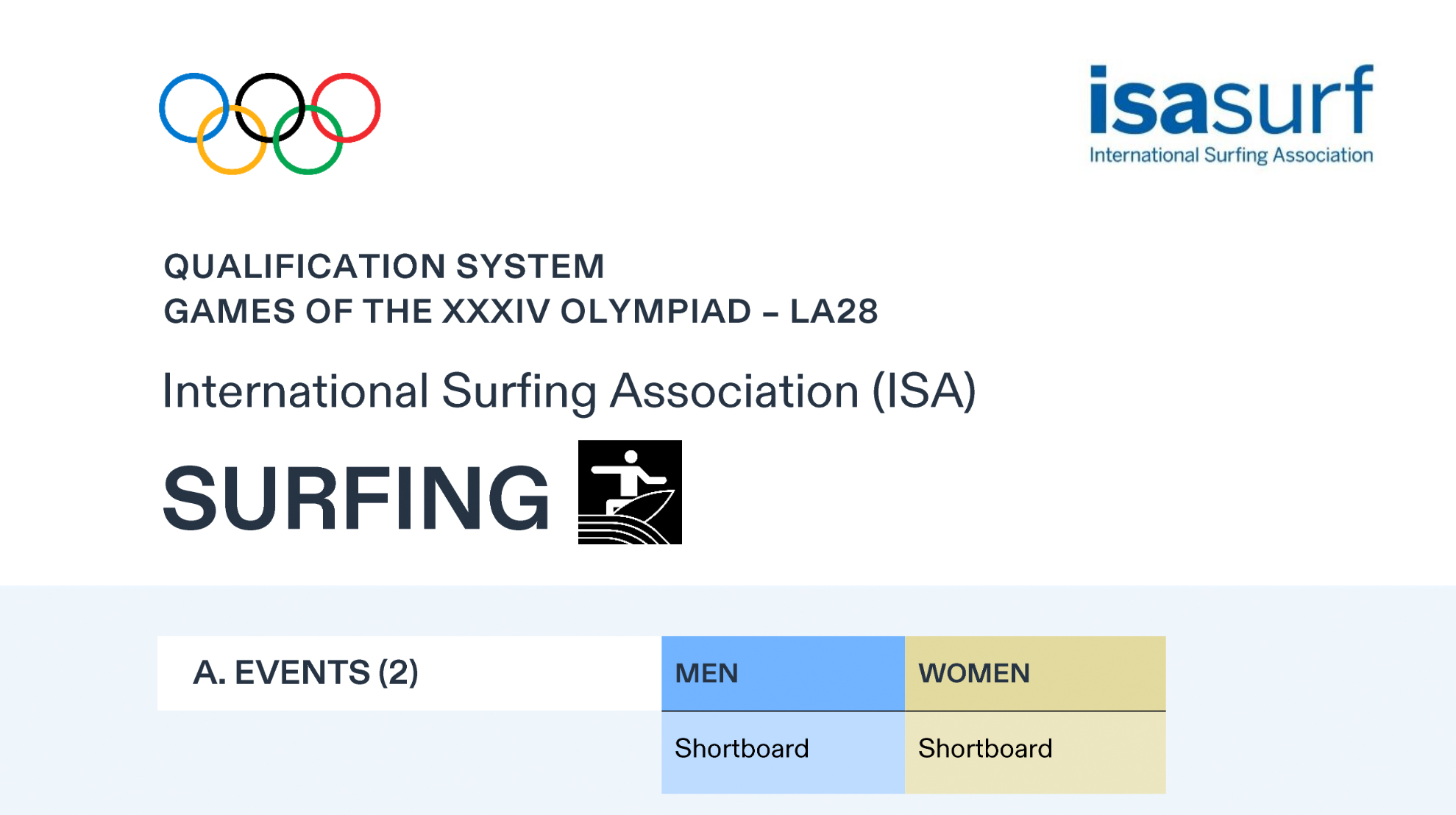 国際サーフィン協会(ISA)は本日、国際オリンピック委員会(IOC)が承認したオリンピックサーフィン競技の予選システム(QS)を発表した。