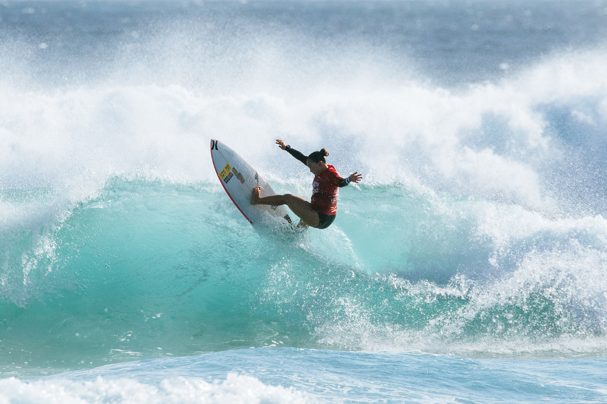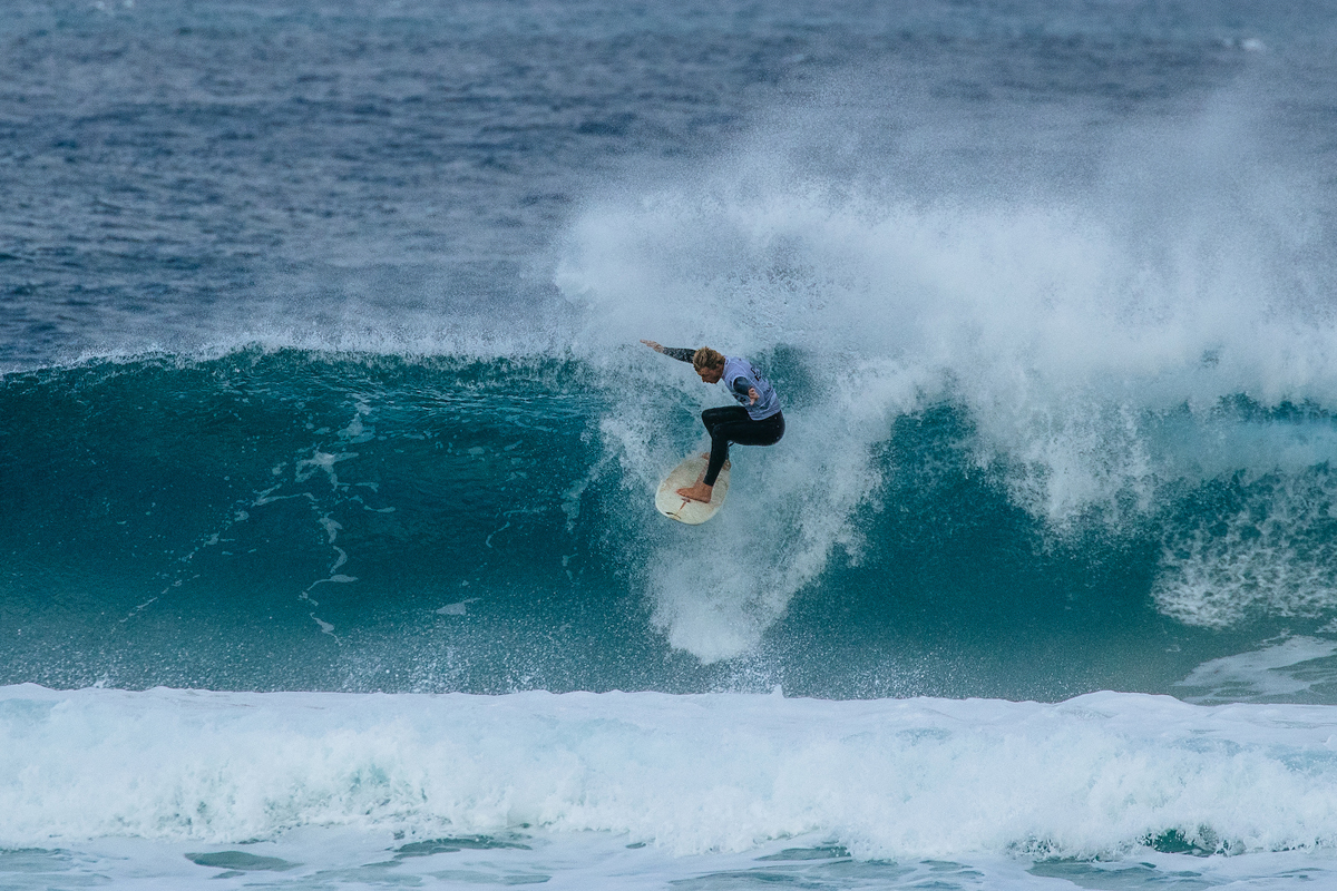 絵のように美しいケープ・ウーラマイの3~5フィートのピークでは、潮のシフトに伴い異なるバンクでアクションが展開され、レフトとライトで波がブレイク。男子はラウンドオブ104と96を、女子はラウンドオブ48をそれぞれ完了した。